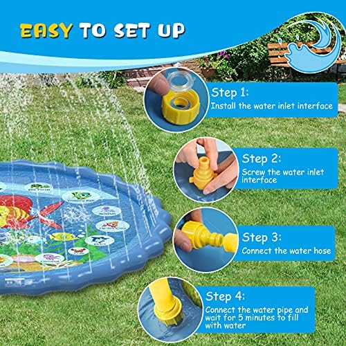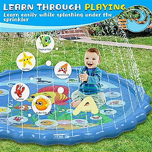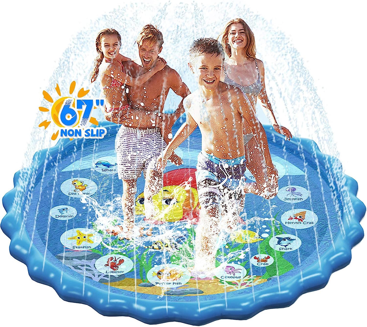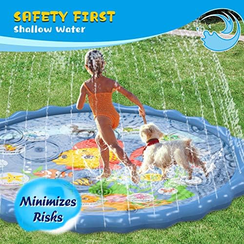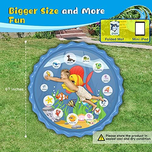 「JUGUETES DE VERANO PARA NIÑOS MAYORES DE 3 AÑOS」 Este tapete súper rociador de temática marina tiene 67 pulgadas de diámetro. Definitivamente es un artículo popular en verano. Es adecuado para que los niños tengan una fiesta fresca de verano en el patio trasero, el césped o la playa. Los niños juegan y gatean en el agua. pueden disfrutar de la diversión de rociar y la sensación de frescor. El juguete perfecto para salpicaduras al aire libre, adecuado para niños y niñas de 3 4 5 6 7 8 9 10 años.
