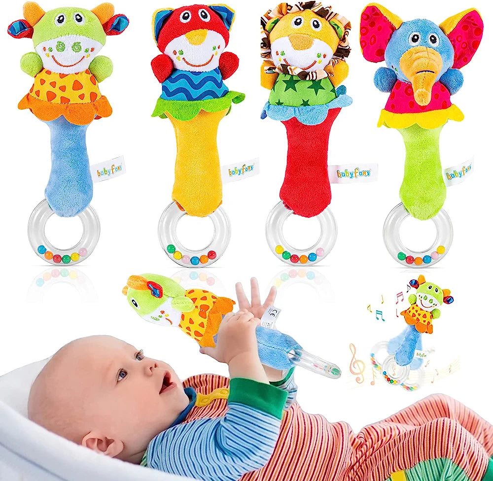 Baby fans- 4 juguetes de sonajero suave para bebé de peluche