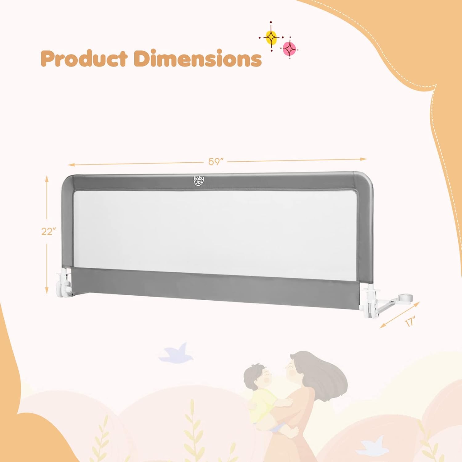 BABY JOY- Barandilla de cama para niños pequeños, 59 pulgadas