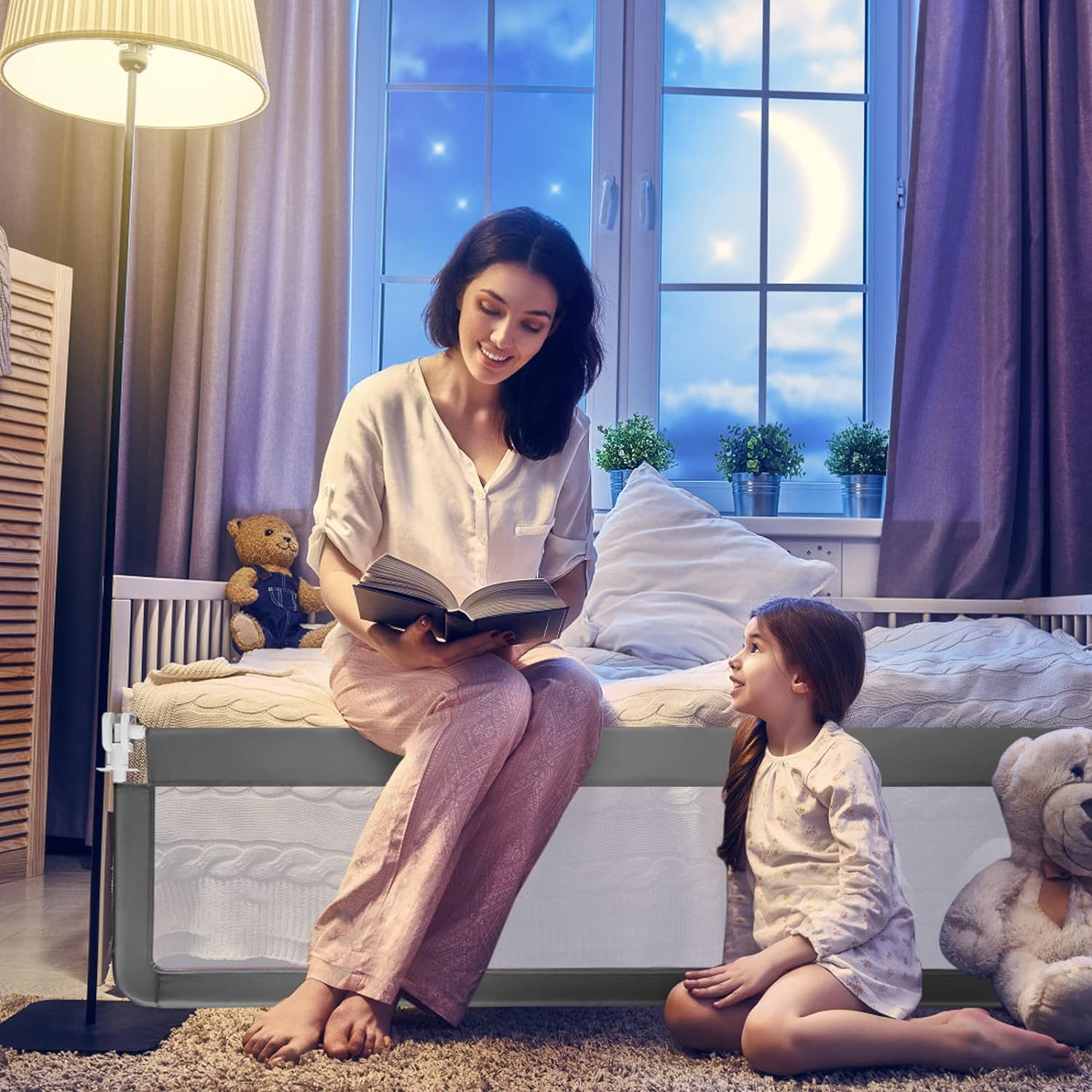 [Seguridad a la hora de acostarse para niños mayores]: nuestra barandilla de cama está especialmente diseñada para bebés que se transforman de cunas a camas estándar normales. Está diseñado a una altura perfectamente adecuada para proteger a sus hijos de rodar sobre la cama y lesionarse accidentalmente. Mientras tanto, la barandilla de la cama viene con un sistema de anclaje ligero para reforzar la seguridad.