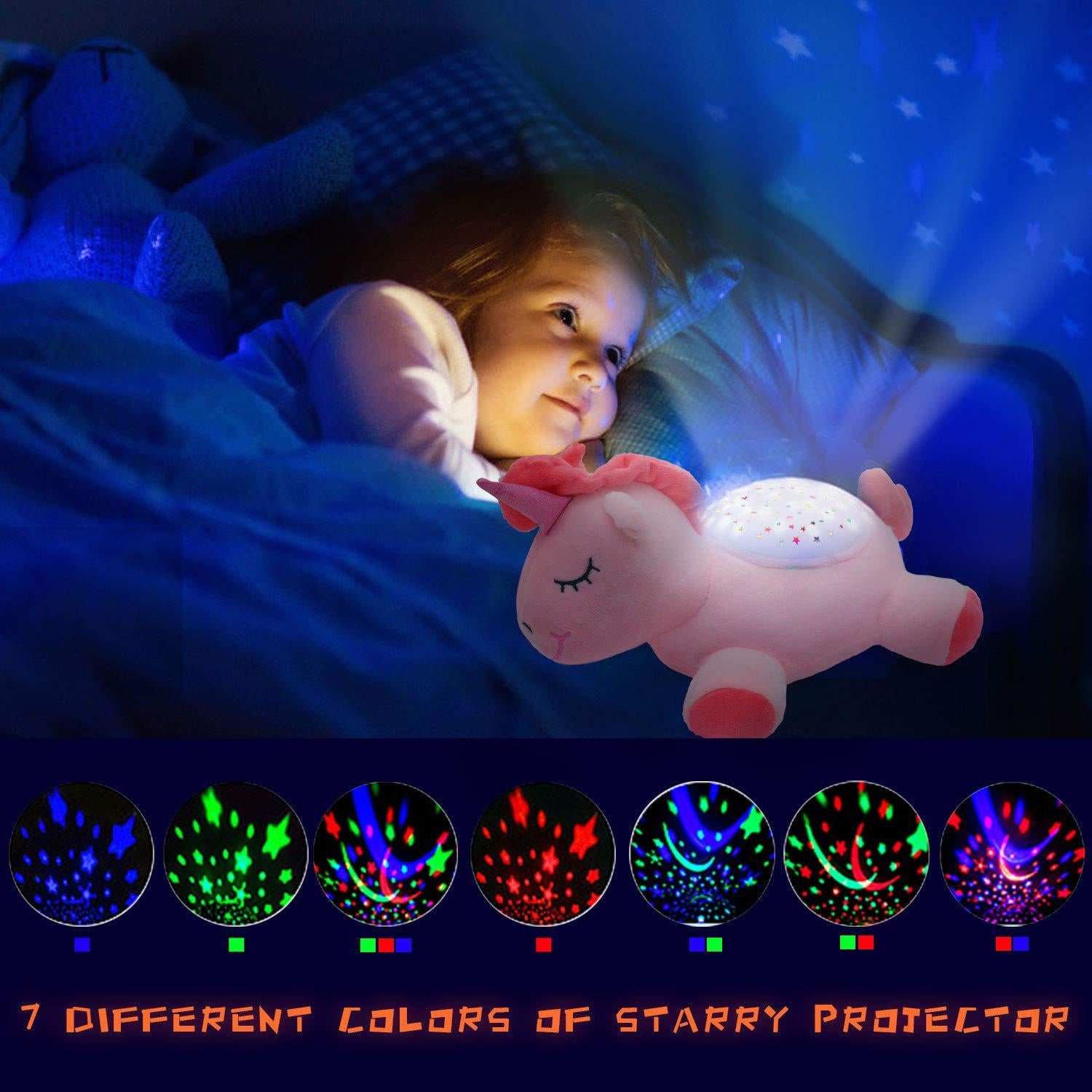 Unicornio con pantalla de luz nocturna relajante y máquina de sonidos.