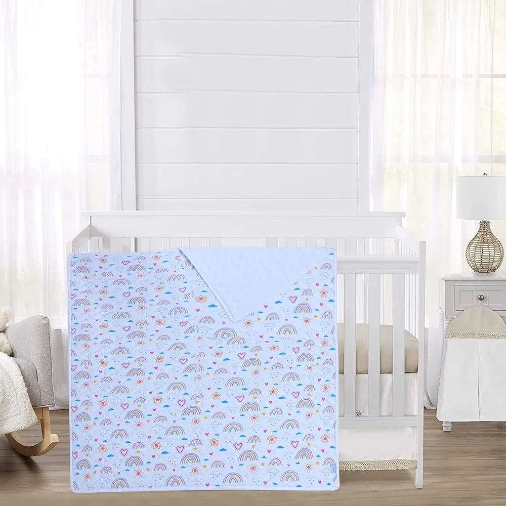 JUEGO DE ROPA DE CUNA PARA BEBÉ DE 3 PIEZAS: La sábana ajustable para cuna súper suave está diseñada para adaptarse a un colchón de cuna de tamaño estándar para cuna. Todos los demás artículos también son para colchones de cuna de tamaño estándar. La colcha mide 40 x 47 pulgadas, la sábana para cuna mide 40 x 47 pulgadas y la funda de almohada mide 18 x 13 pulgadas.