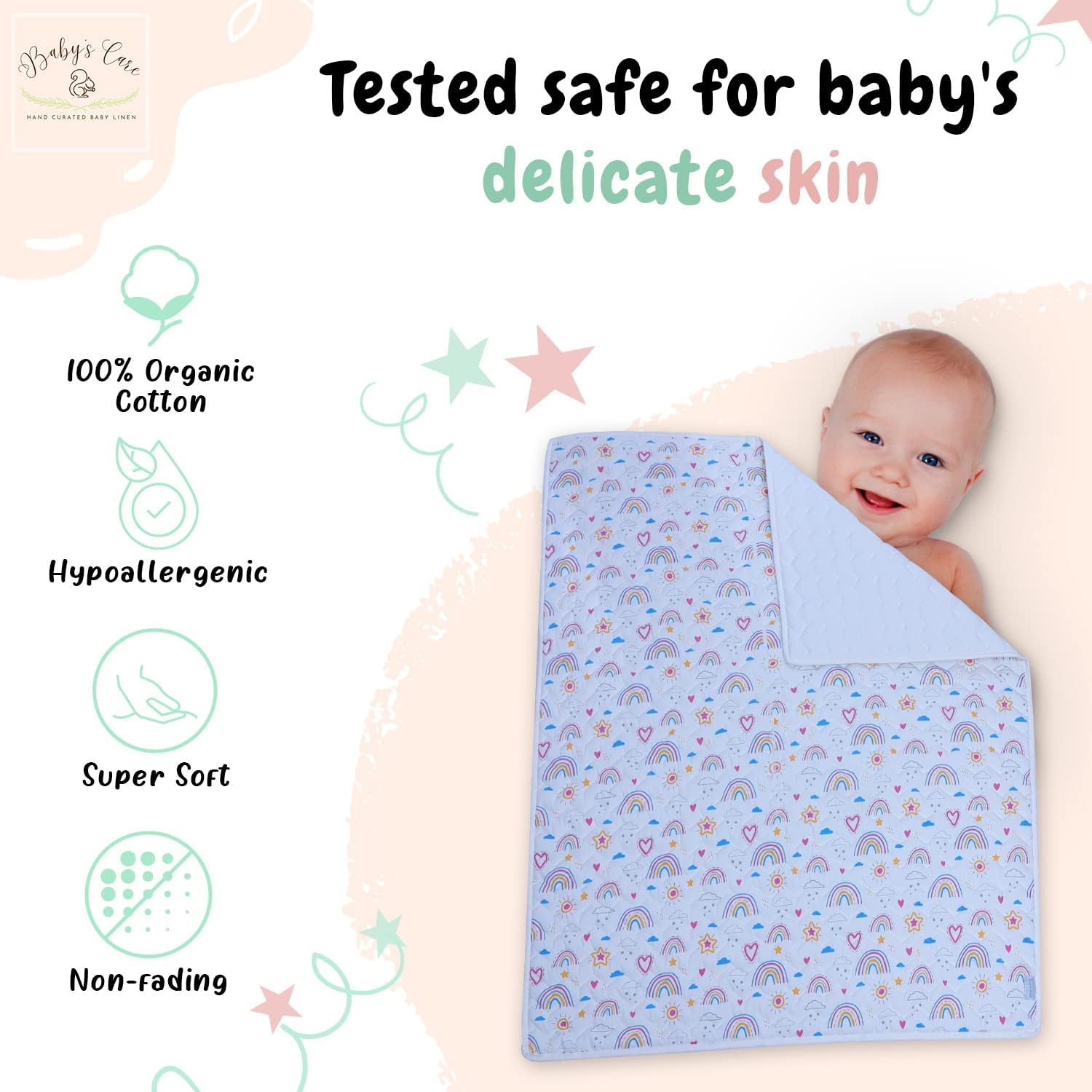 PRODUCTO SEGURO PARA BEBÉS CON CERTIFICACIÓN GOTS: Las sábanas para cuna de algodón orgánico 100 % suave de Babys Care están certificadas por OEKO-TEX, que es más segura para la piel del bebé. Nuestro juego de ropa de cama para niños pequeños está hecho con algodón 100 % orgánico, que es suave, hipoalergénico, transpirable, resistente a la deformación y lavable a máquina.