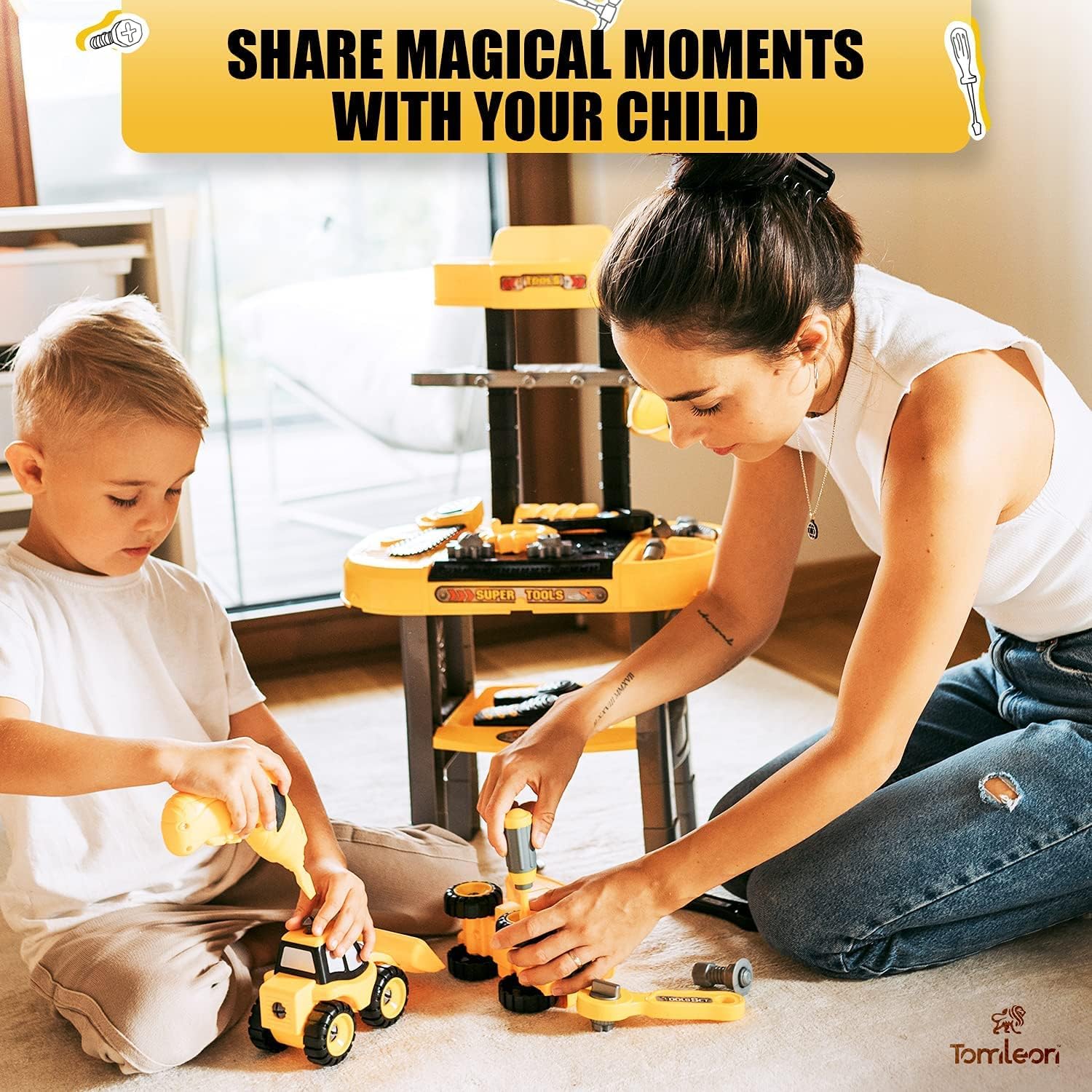 El mejor juego de herramientas de banco de trabajo para niños pequeños y preescolares: promueve el crecimiento y el desarrollo. Trabaja junto a papá, con este juguete de simulación como su pequeño asistente de construcción