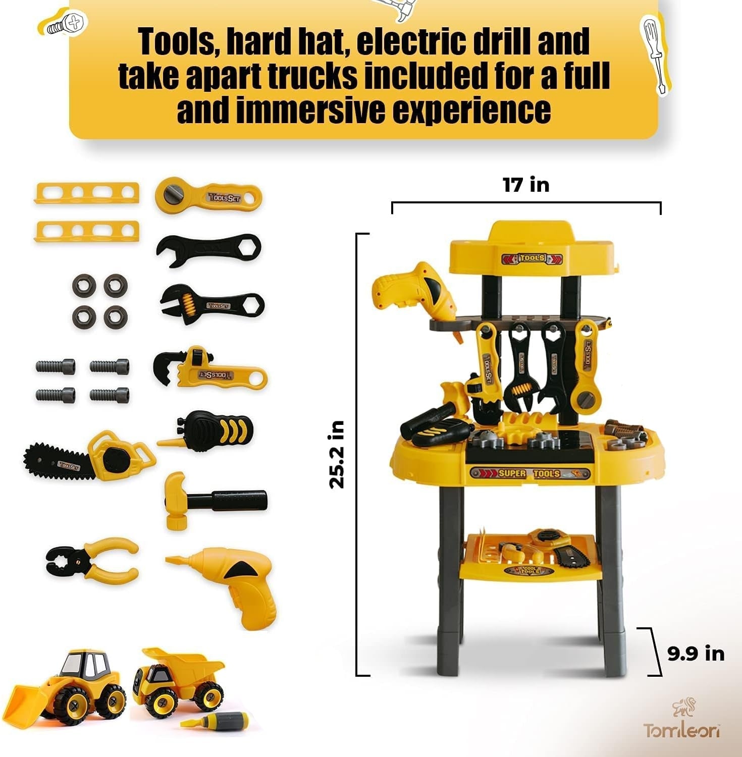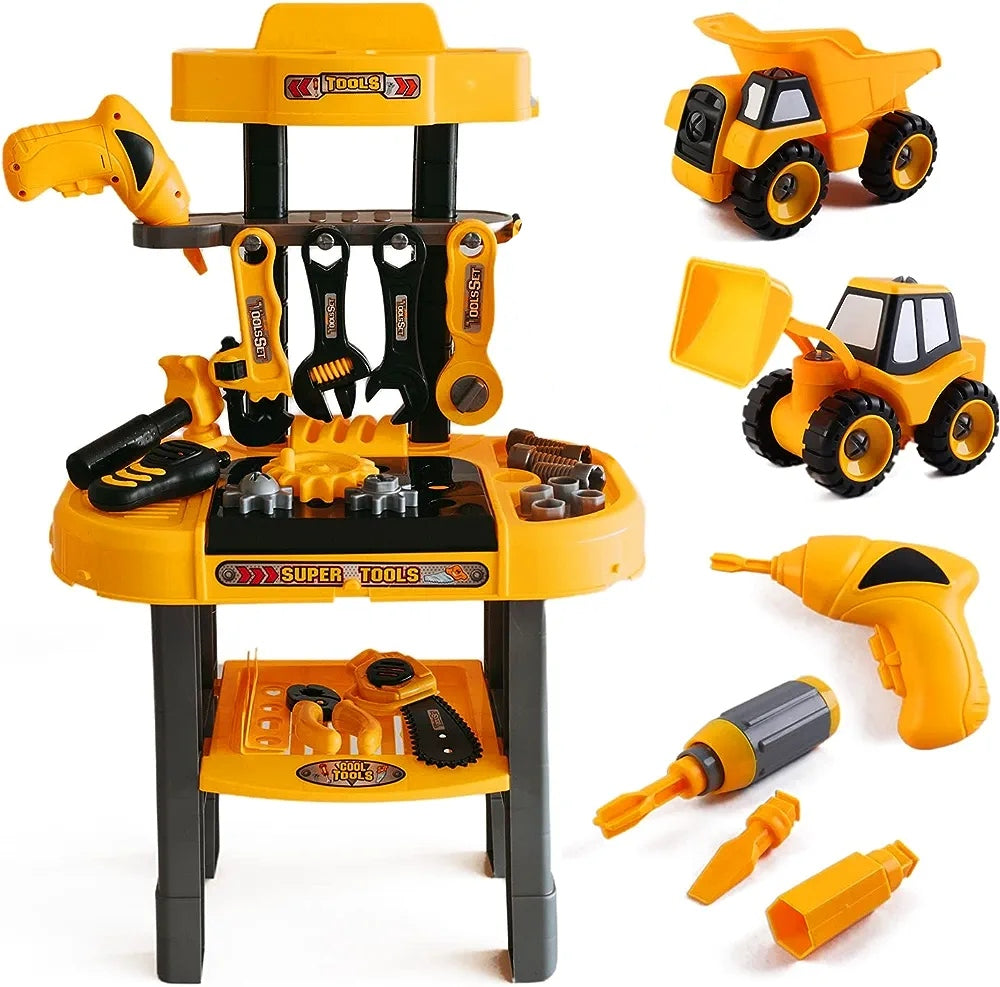 Un juego de taladro para niños pequeños con extras: este juguete de construcción viene completo con todas las herramientas que tu pequeño necesita, además de un tractor y un camión volquete que se pueden desmontar y volver a montar con las herramientas una y otra vez.