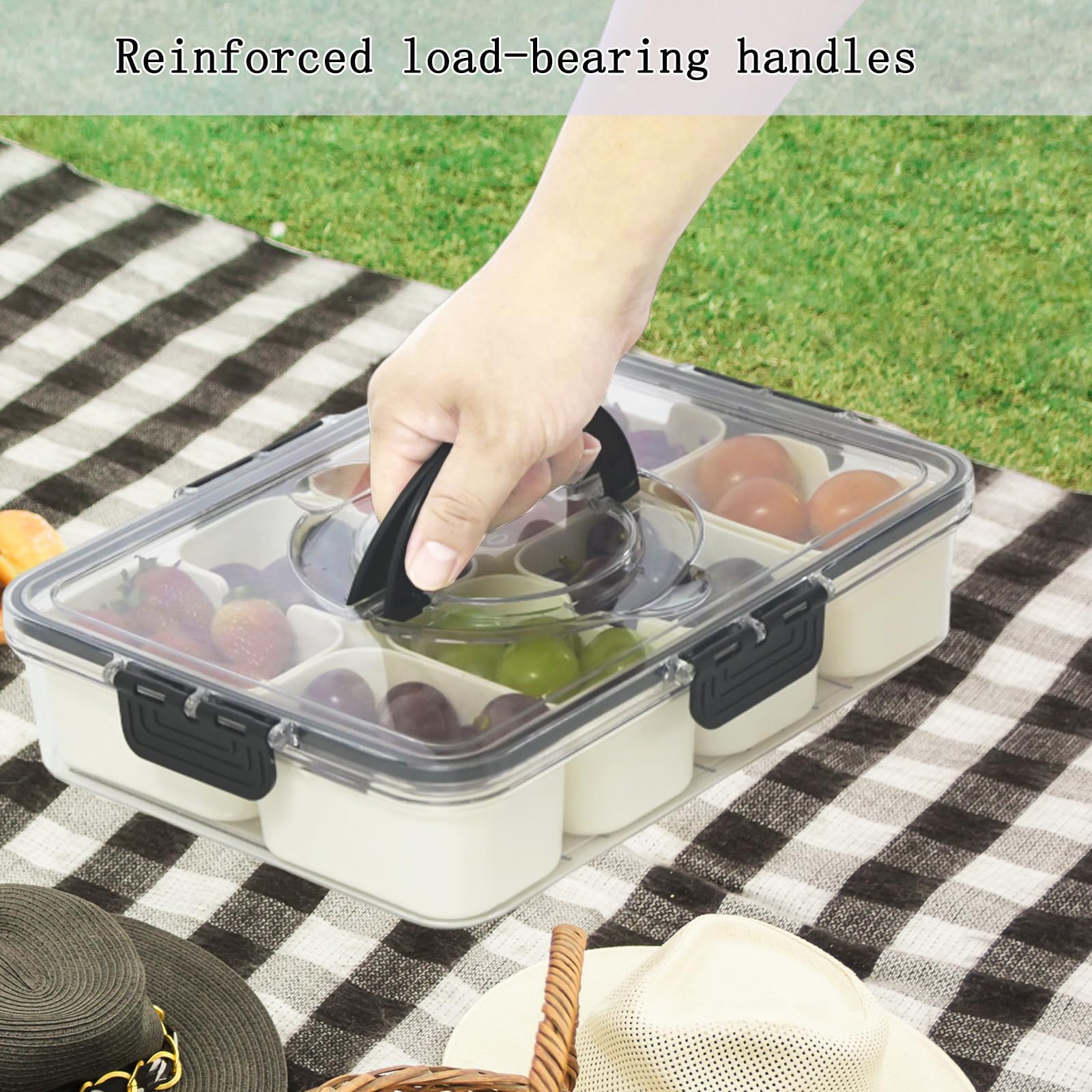 Bandeja portátil con 8 compartimentos y tapa y asa, negro