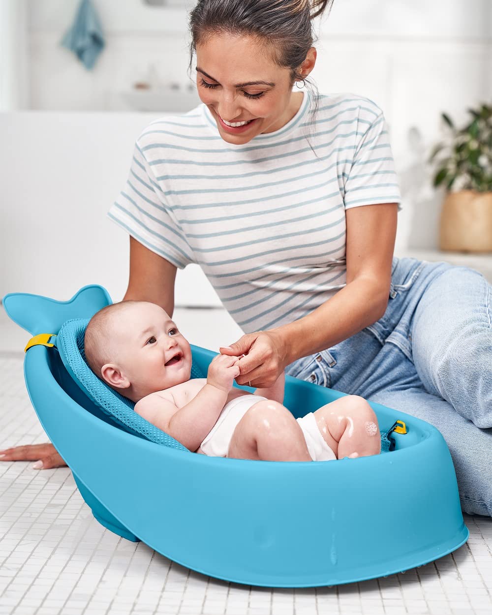 Bañera para bebés Skip Hop Moby, 3 en 1 Smart Sling Tub, azul, Azul