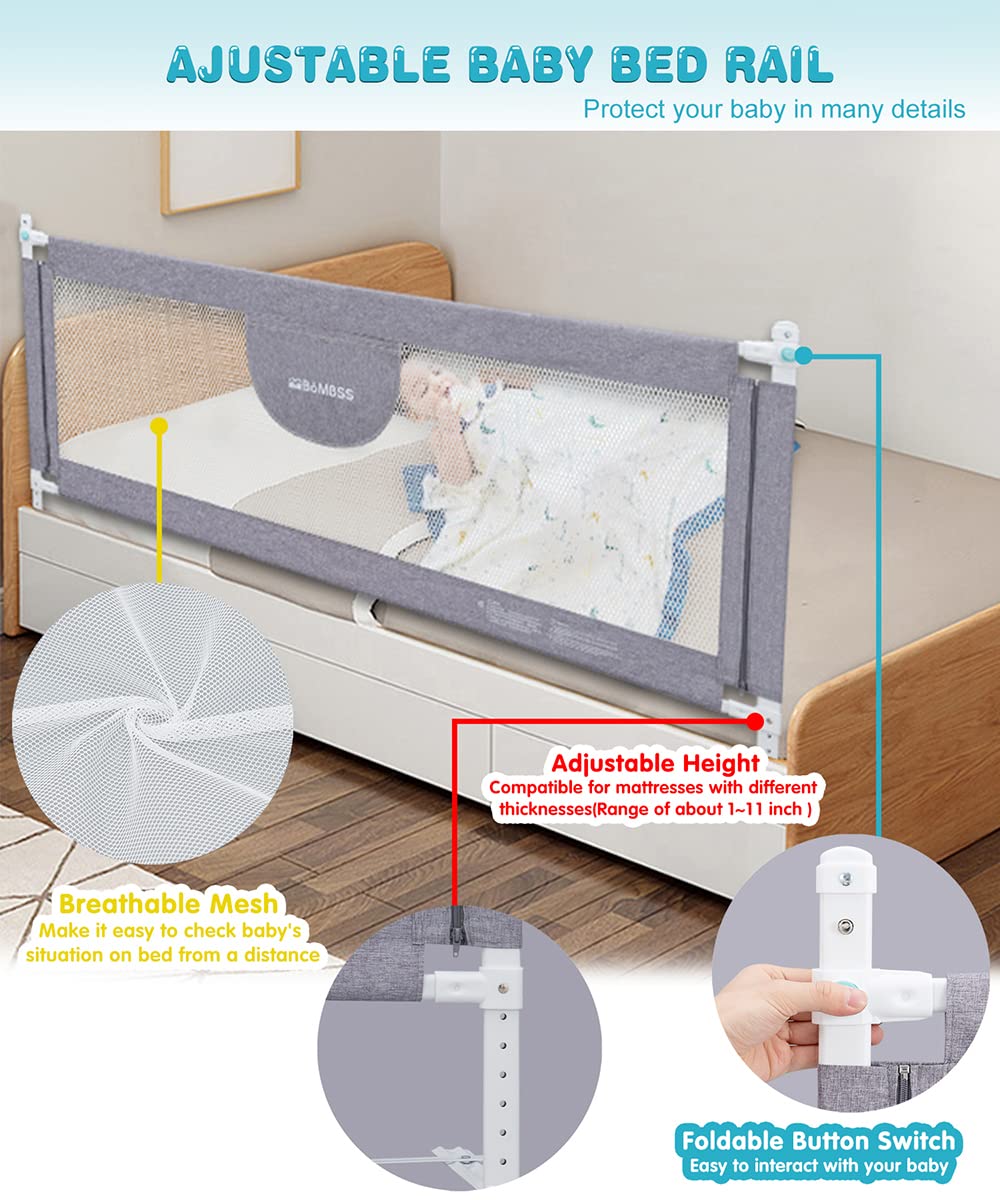 Barandilla de cama para niños pequeños de 73 pulgadas de largo