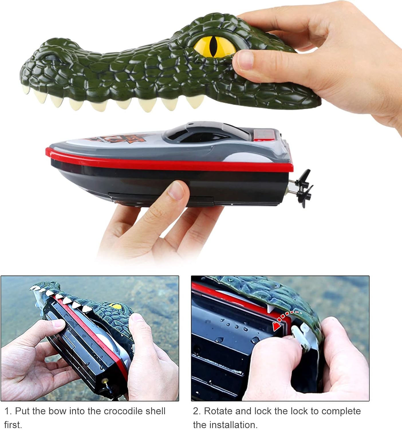 Barco de control remoto para piscinas y lagos, cocodrilo 3 en 1 RC