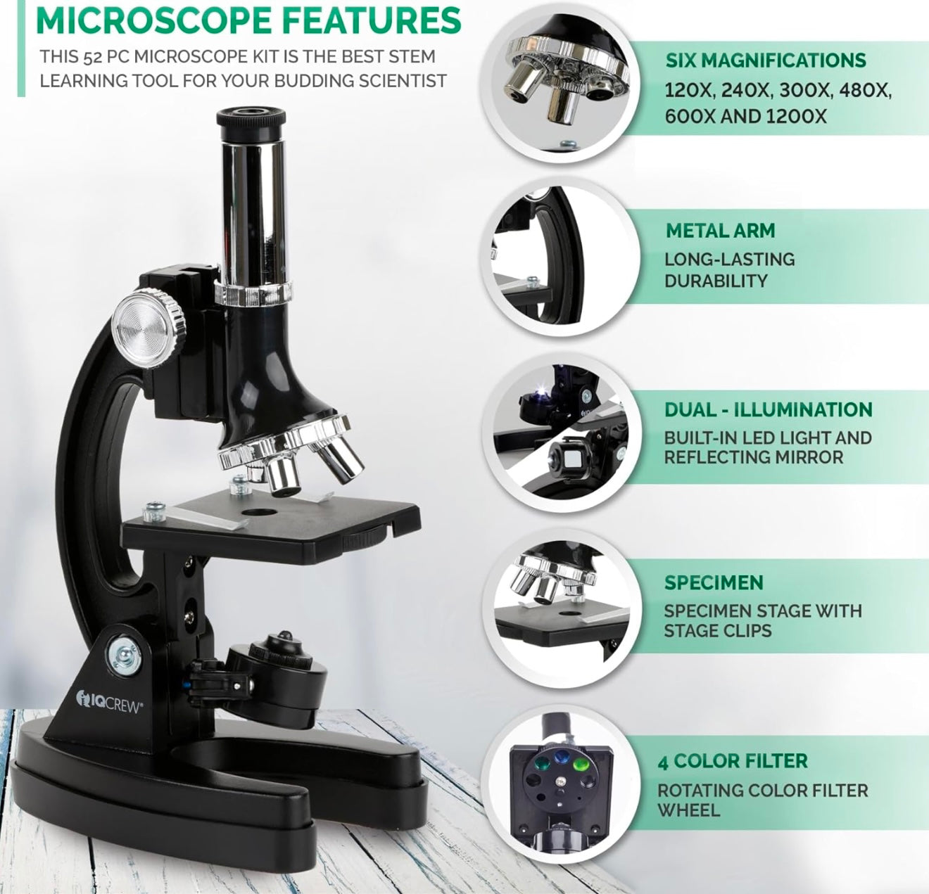Bastidor y base de metal Amscope de 6 potencias con accesorios de 52 piezas
