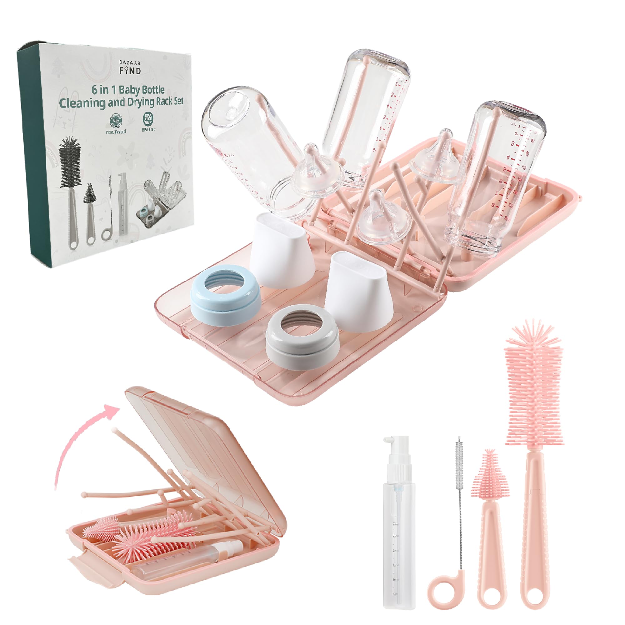 Bazaar Find Kit de limpieza de biberones de viaje