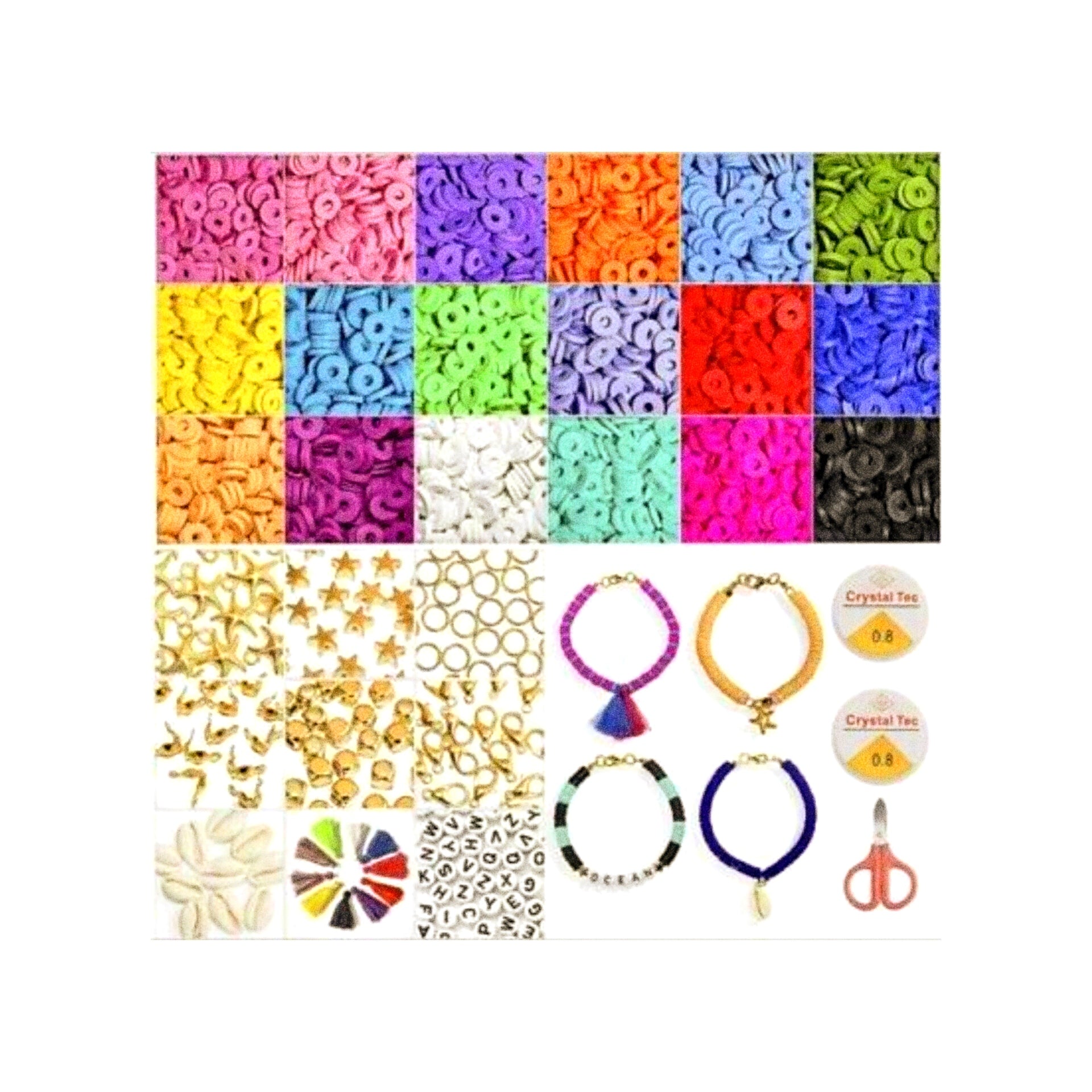 BEAKRELS- Kit de fabricación de joyas de cuentas de arcilla de polímero redondo plano 5000+ piezas - colorido