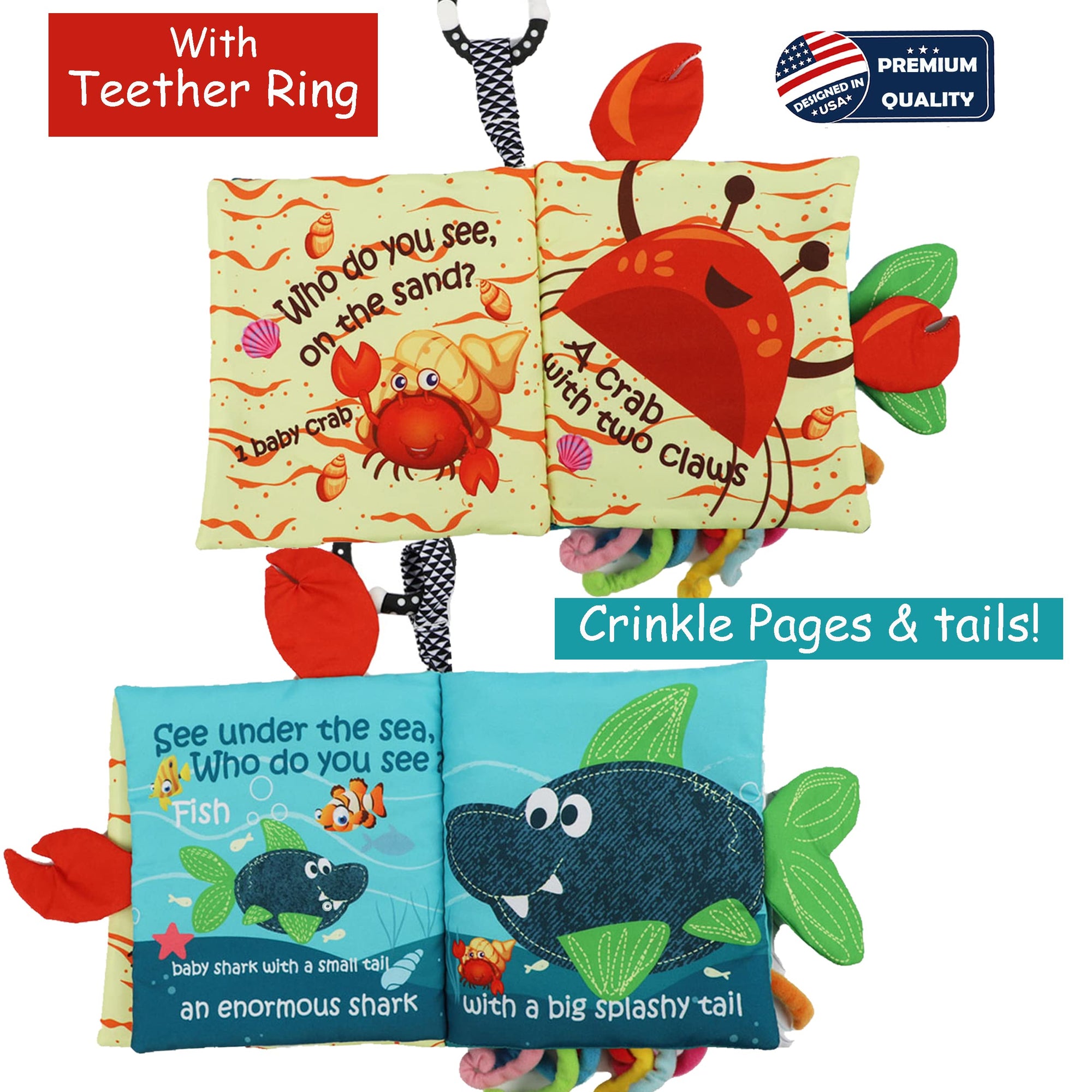 Bebé mondo juguetes suaves para bebés, libros de tela arrugada para bebés