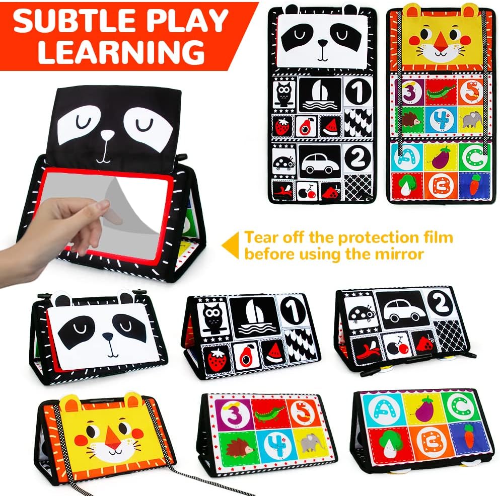 【Plegable, portátil y fácil de limpiar】El juguete para bebé en blanco y negro viene con un espejo transparente que no se rompe fácilmente, es seguro y duradero. El espejo de reflexión real permite que el bebé se concentre en un rostro humano, preferido desde el nacimiento. Su peso ligero hace que el espejo de juguete para el tiempo boca abajo sea fácil de plegar y transportar. Puede atar el espejo de piso para bebé al reposacabezas del automóvil con un asiento para automóvil orientado hacia atrás o para usar en cunas, cochecitos y tronas.