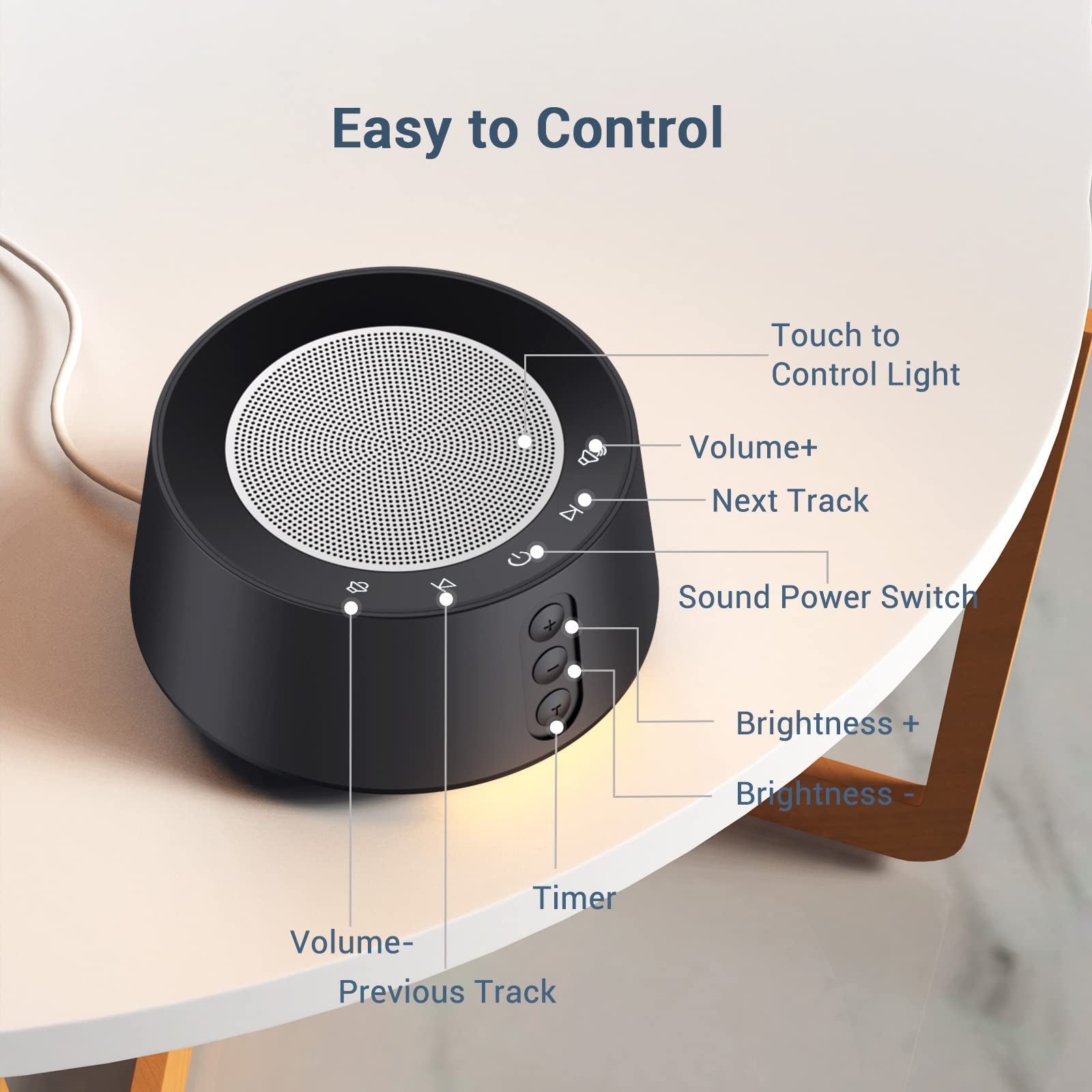 BGOVERSS Máquina de sonido de ruido blanco con 14 sonidos relajantes y 10 niveles de luz nocturna