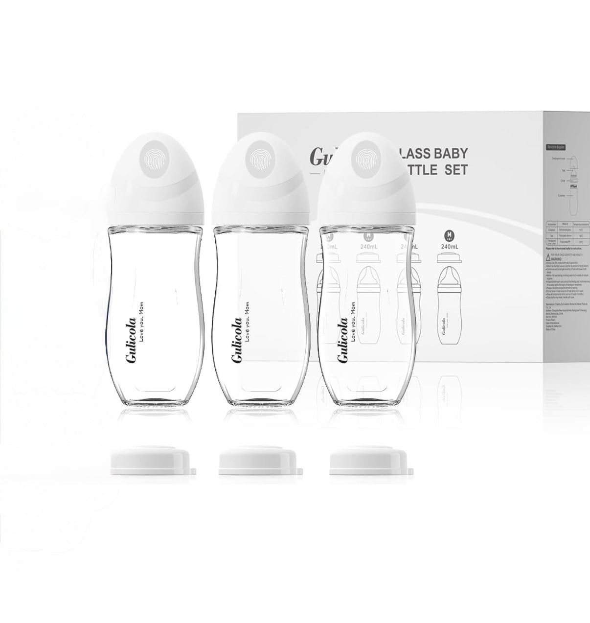Biberón de vidrio natural de 8 onzas para bebés amamantados, paquete de 3
