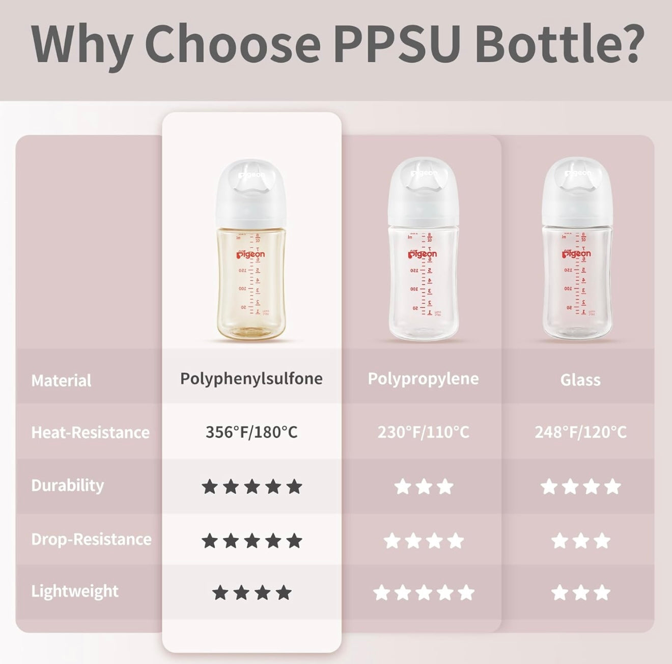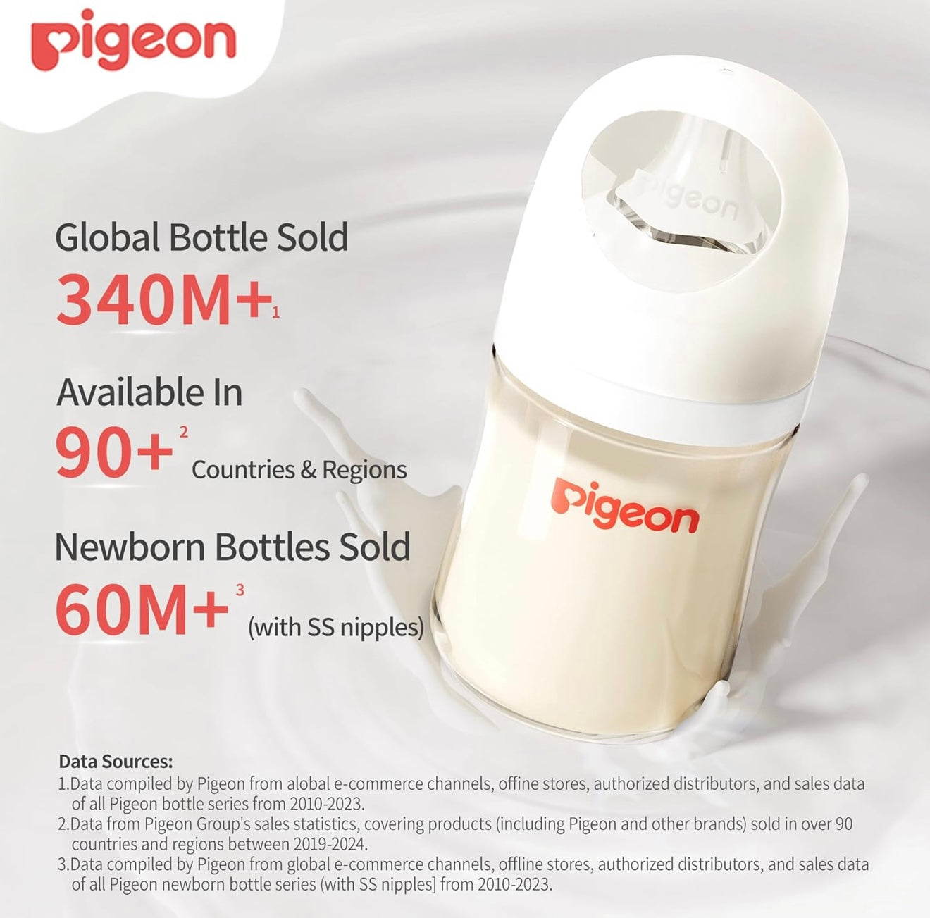 Biberón Pigeon de cuello ancho, tacto natural, fácil de limpiar, 5.4oz (paquete de 2)