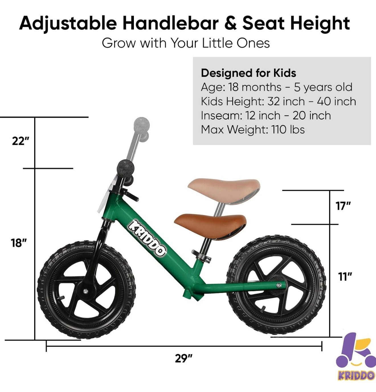 Bicicleta de equilibrio KRIDDO para niños de 24 meses a 5 años