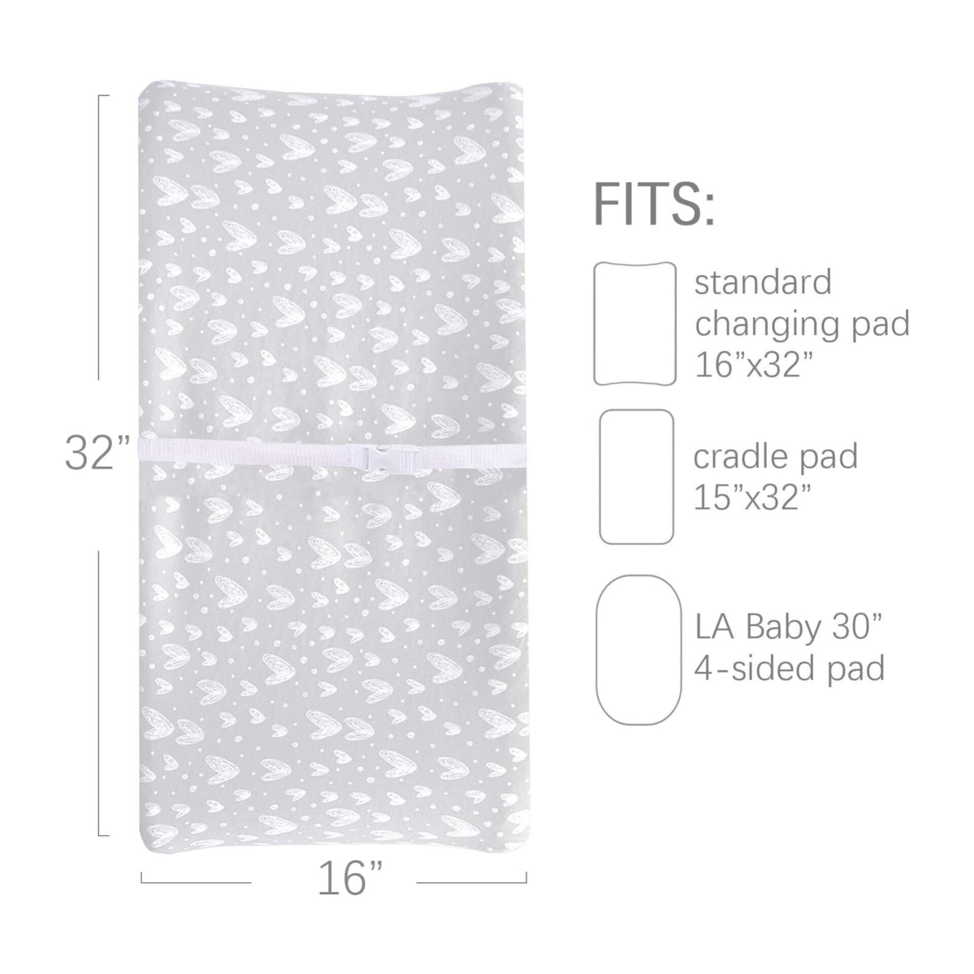 Biloban- Funda para cambiador, 100% algodón, corazones gris