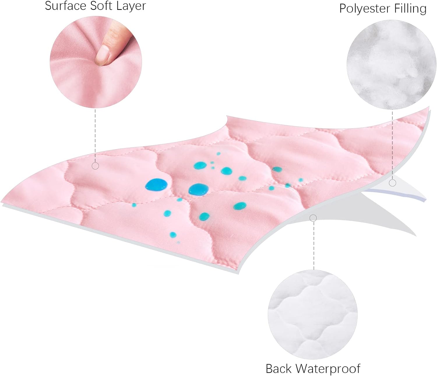 100% IMPERMEABLE Y SILENCIOSO: Nuestras sábanas acolchadas para minicuna con acolchado extra grueso brindan a su pequeño más comodidad. La capa impermeable está hecha de TPU de calidad alimentaria que no hará ningún ruido plástico cuando su hijo se mueva y contra líquidos y manchas cotidianos.