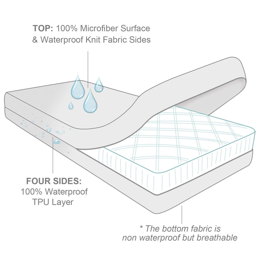 Capa impermeable de TPU de grado alimenticio completamente no tóxica de 5 lados , la tela inferior no impermeable permite que un mayor flujo de aire atraviese el colchón de la cuna.
