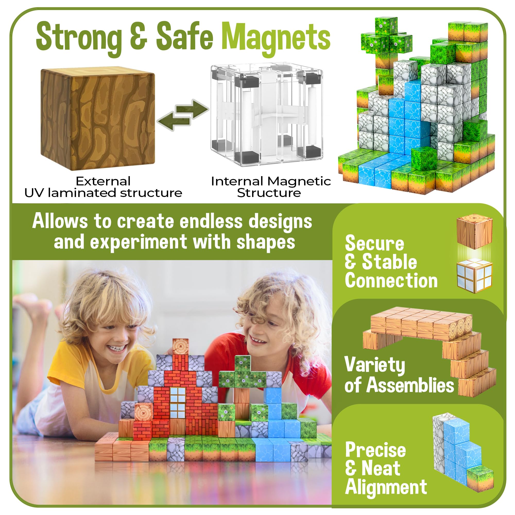 Bloques magnéticos: juego de mundo magnético para construir minas, 108 piezas