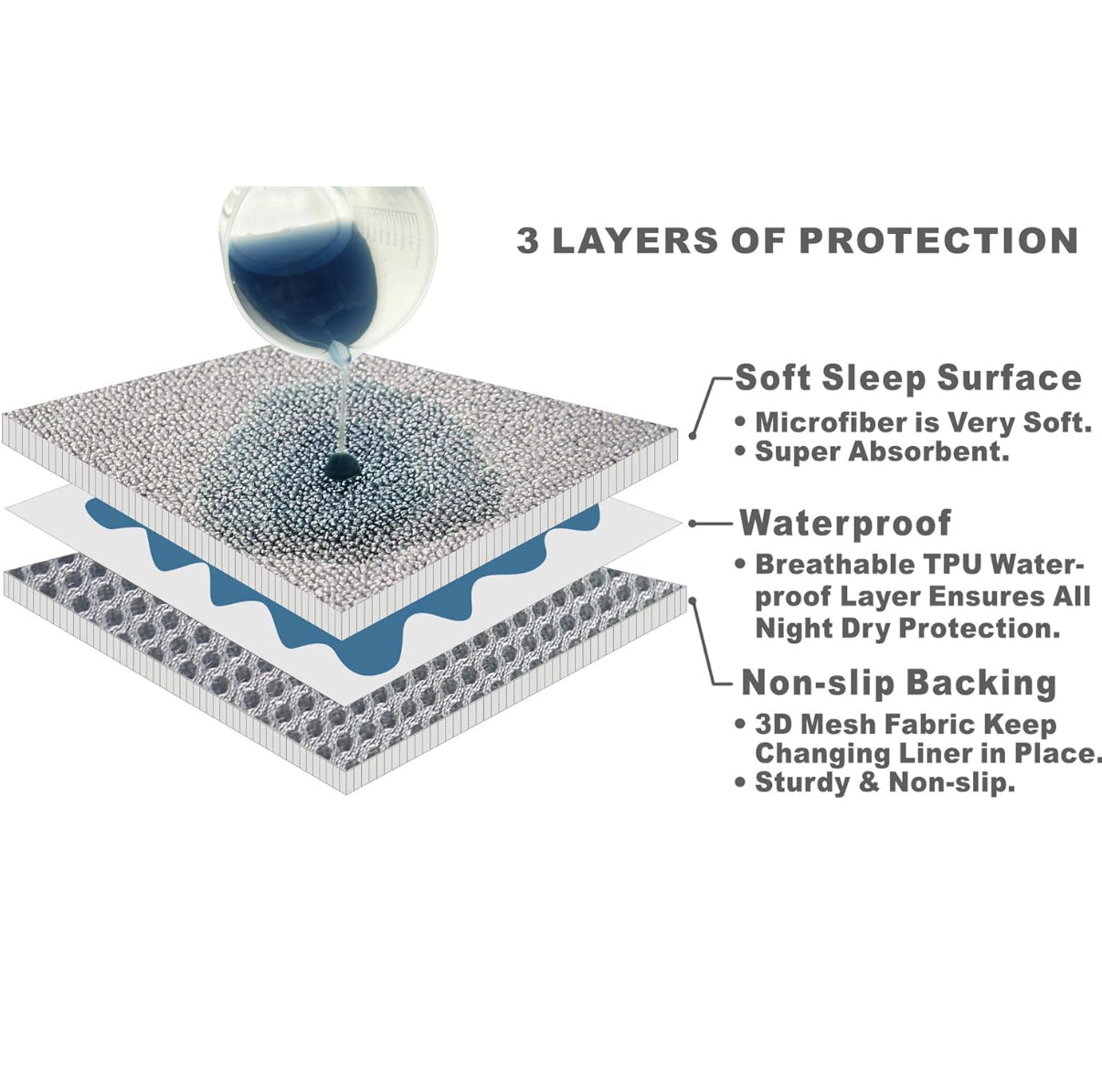 BlueSnail Forro impermeable para cambiador, 3 unidades (14 x 26.5 pulgadas, gris)