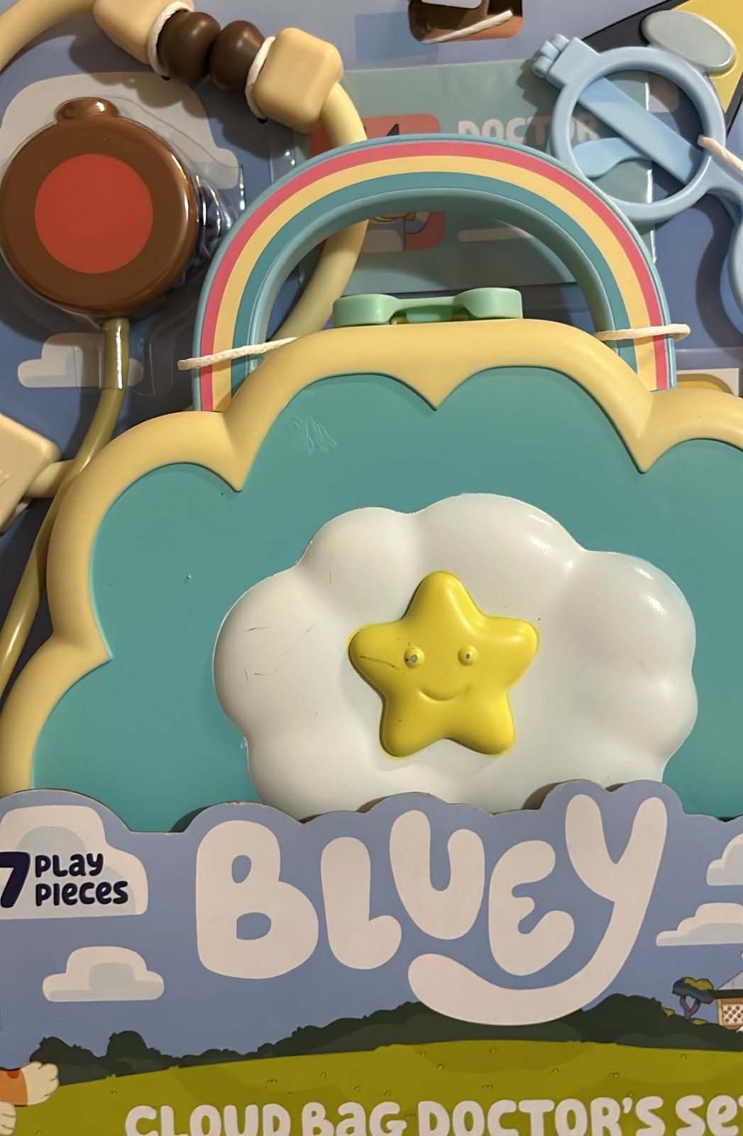 Bluey Bolsa de nube, juego de control médico, juego de juguete con 7 piezas de juego