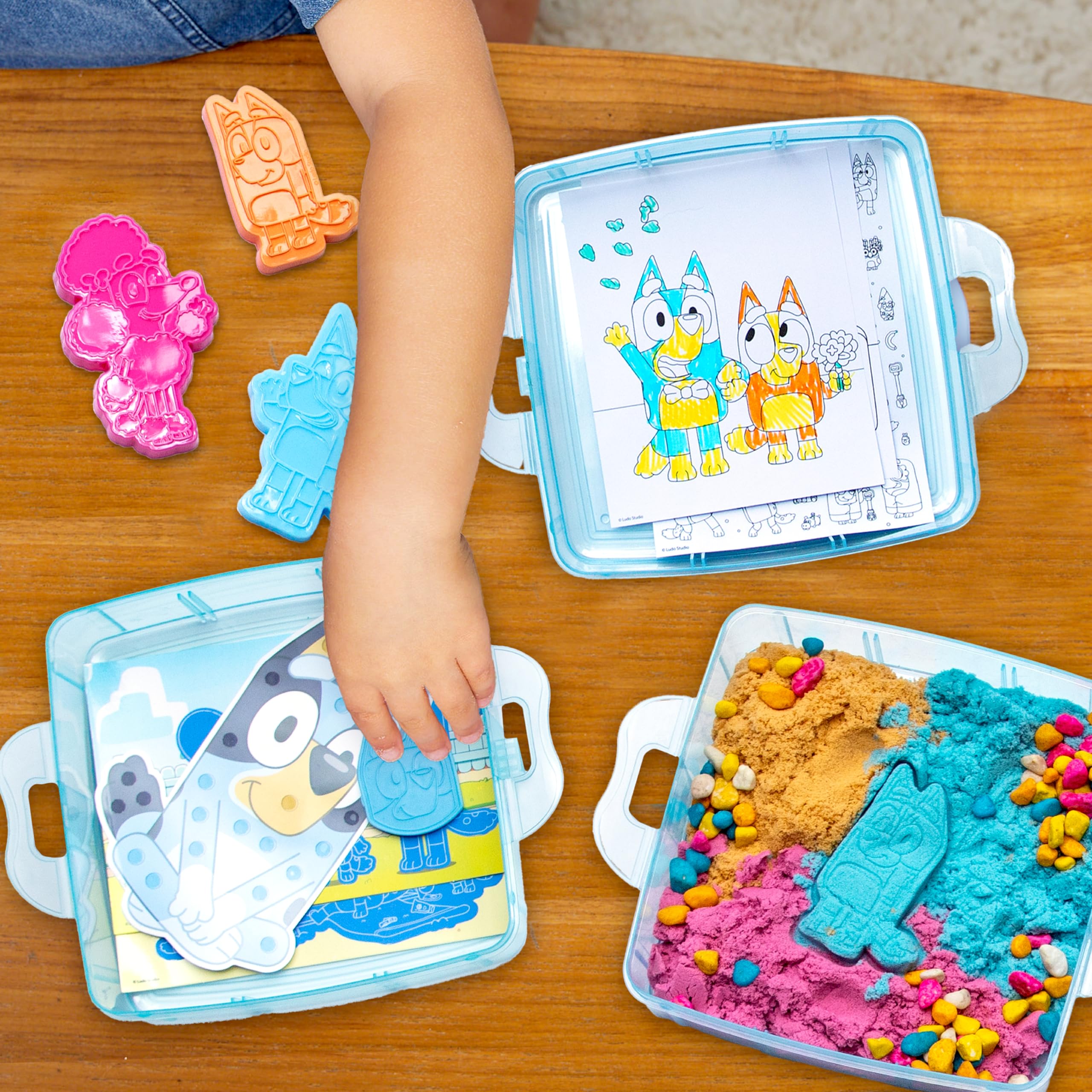 Bluey - Estuche sensorial apilable reutilizable con calcomanías