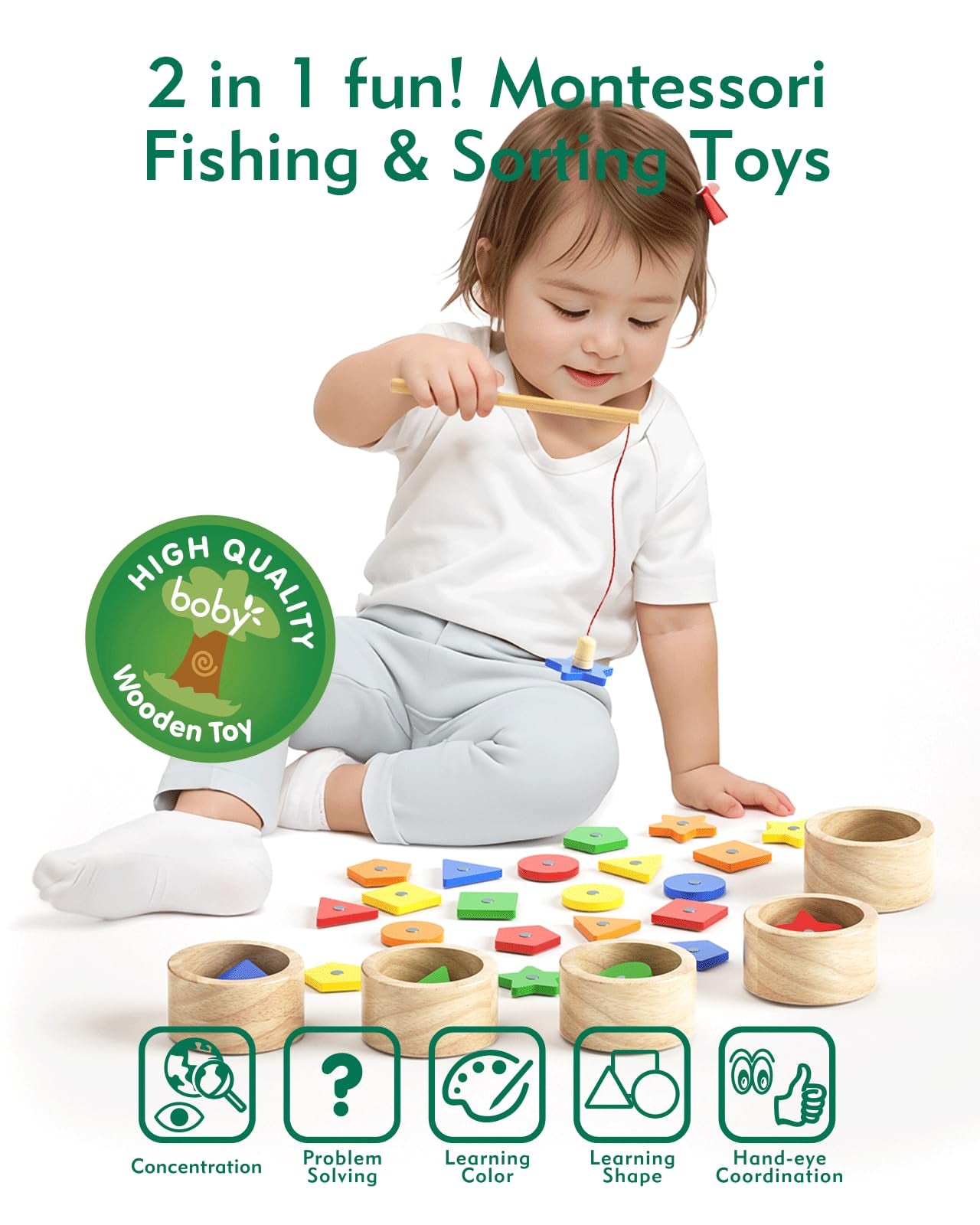 Boby Montessori Toys - Taza de clasificación de formas y juego de pesca 2 en 1