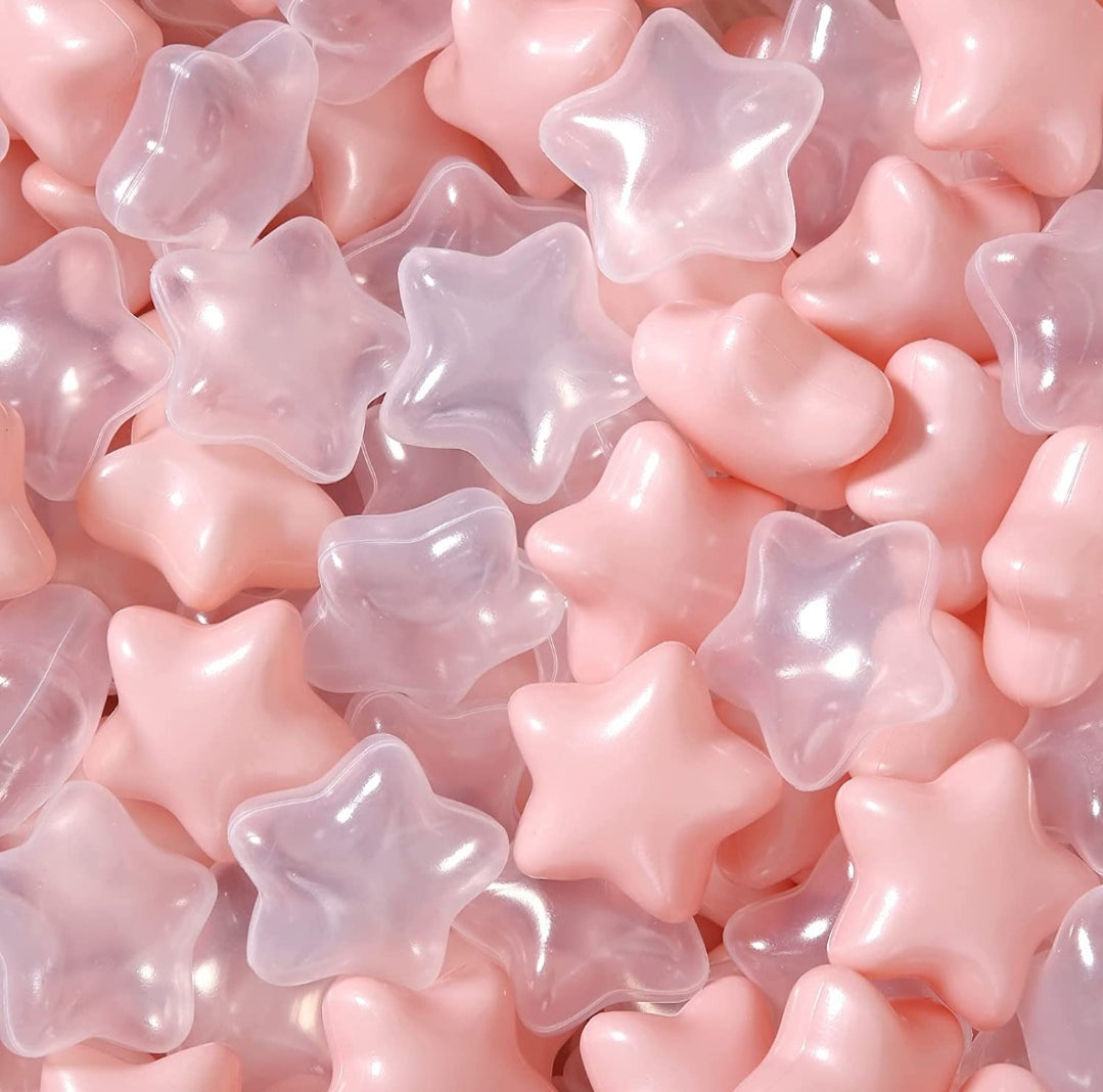 Bolas de plástico con formas de estrellas suave, rosas y transparentes, 100pcs