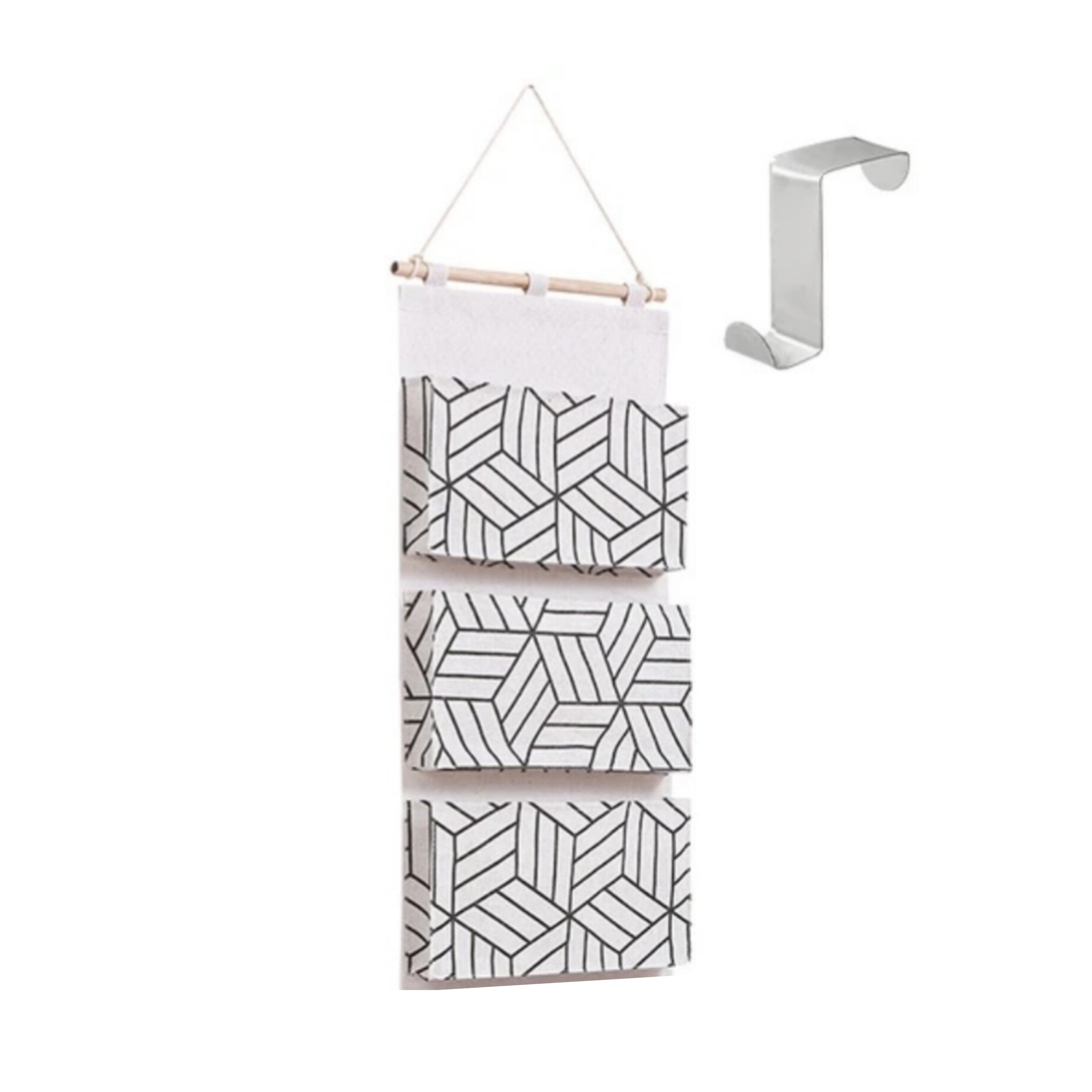 Bolsa de almacenamiento para colgar de tela de algodón y lino 3 bolsillos