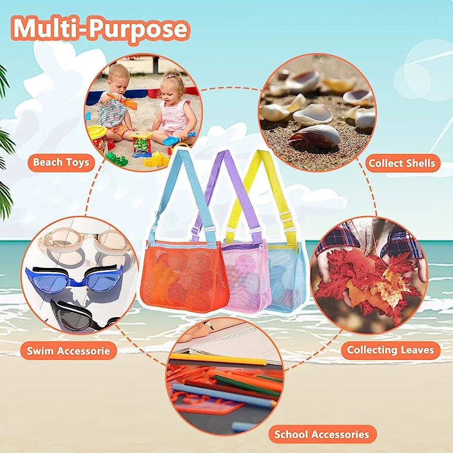 Bolsa de malla para juguetes de playa para niños , 3 unidades