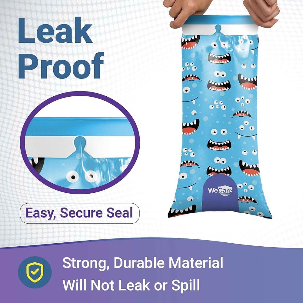 - Envueltas individualmente: las únicas bolsas de emesis envueltas individualmente, las bolsas de enfermedad de automóvil de WeCare se pueden guardar en tu bolso, guantera, mochila o incluso en tu bolsillo.