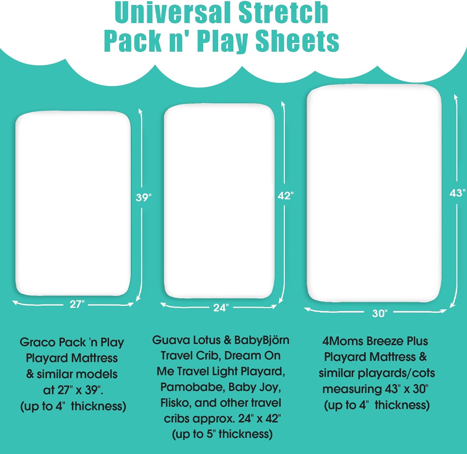 BROLEX - Juego de sábanas bajeras elásticas para cuna portátil, minicuna y encierro, paquete de 2 sábanas