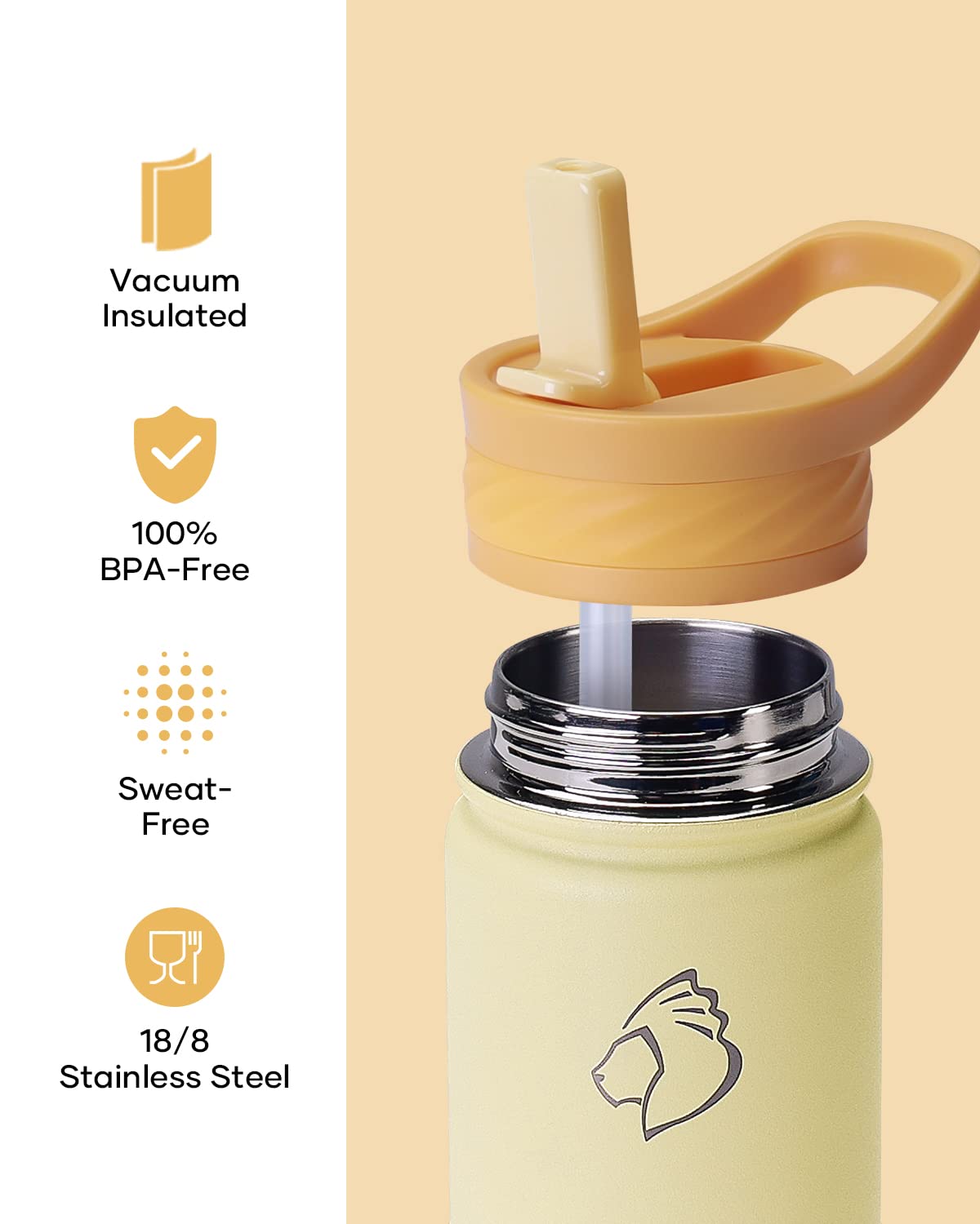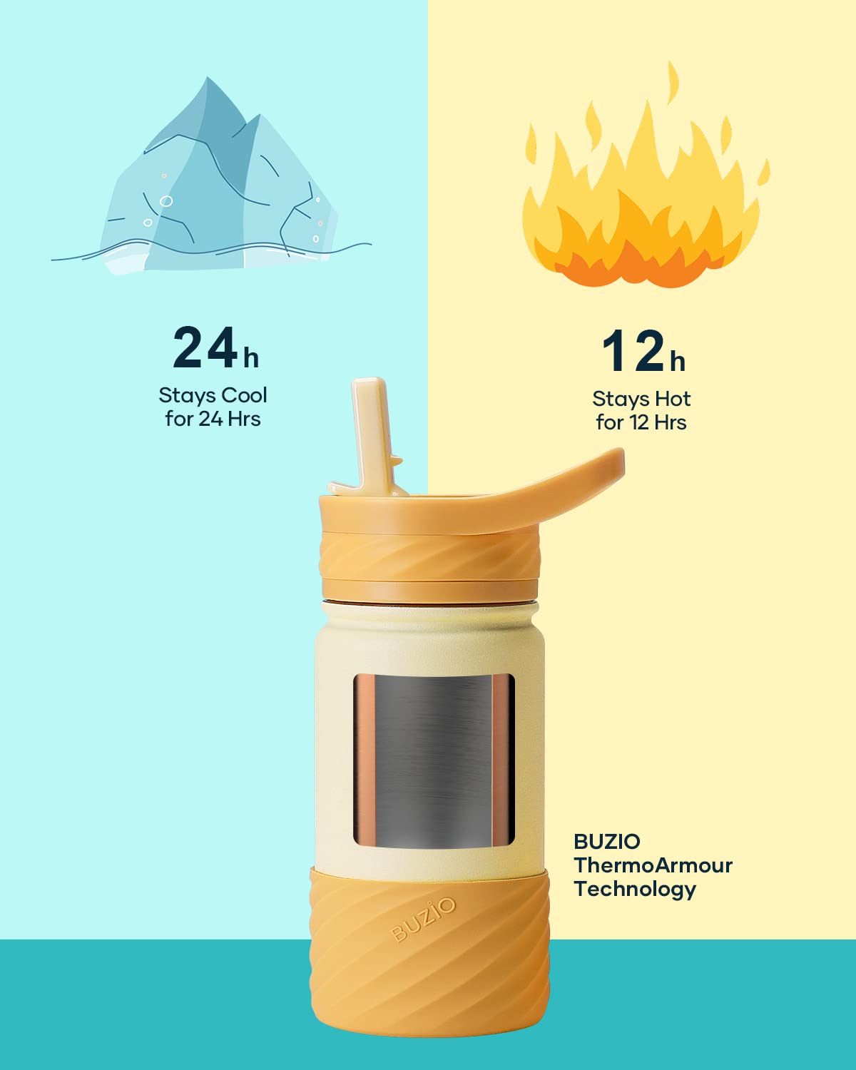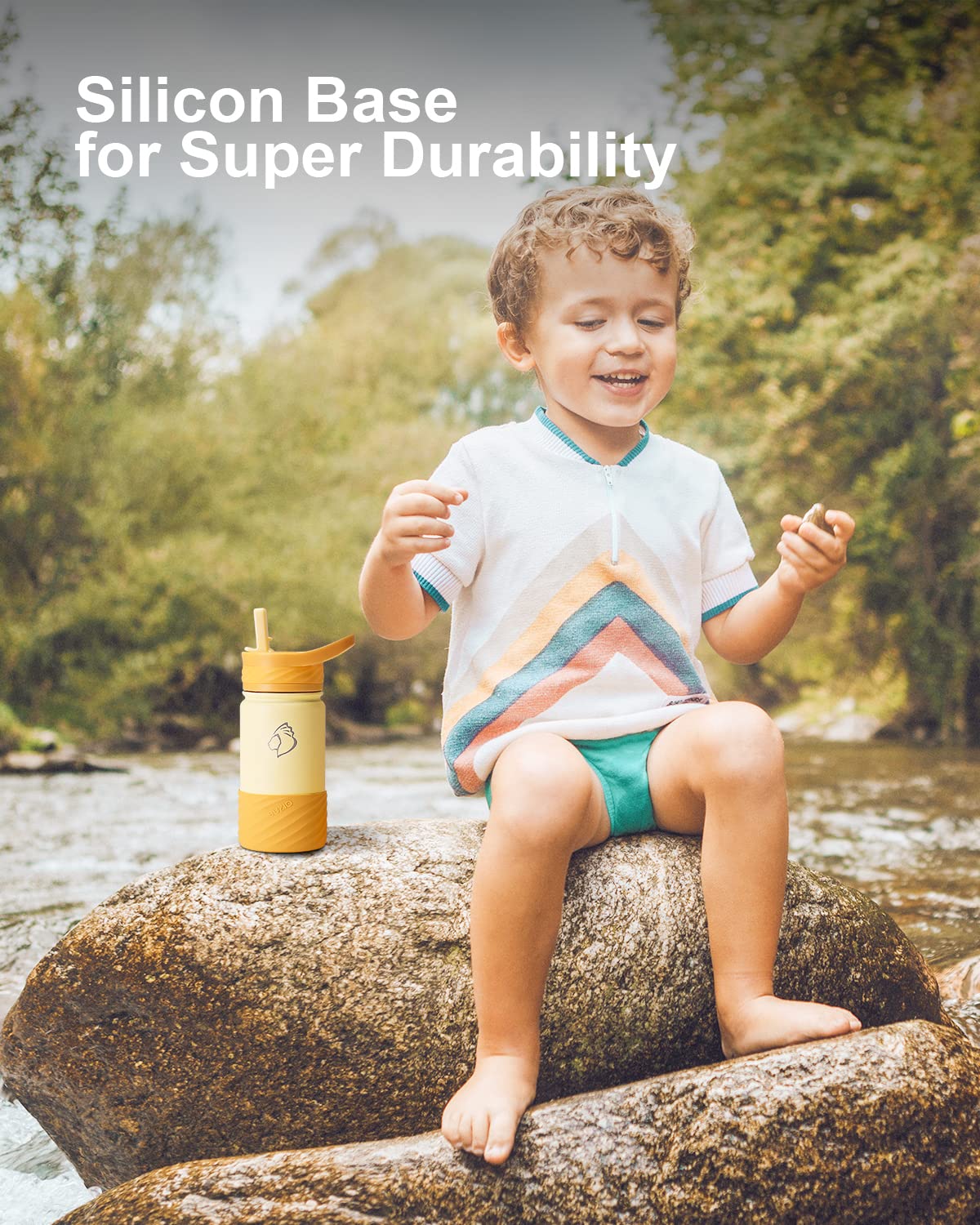 BUZIO Botella de agua para niños pequeños con tapa de popote y funda de silicona