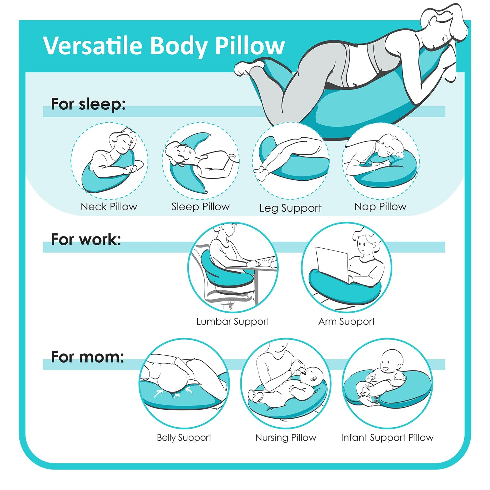 BYRIVER Almohada corporal en forma de C de 39" para dormir de lado