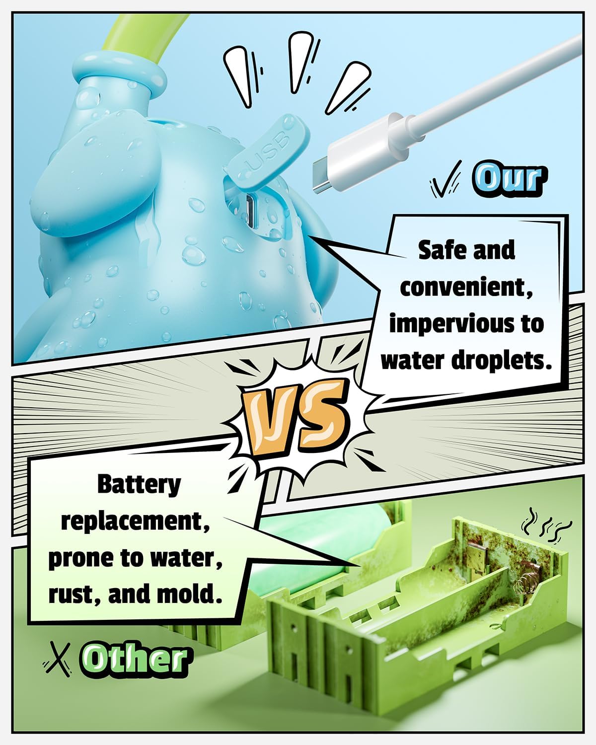 Monitoreo de la temperatura del agua: el cuerpo en forma de elefante del cabezal de ducha para bebé funciona cuando está en contacto con el agua y puede medir automáticamente la temperatura del agua. Una pantalla LED muestra la temperatura actual del agua en Fahrenheit en tiempo real, asegurando que el agua esté a la temperatura adecuada para el baño de tu bebé, proporcionando seguridad durante la hora del baño.