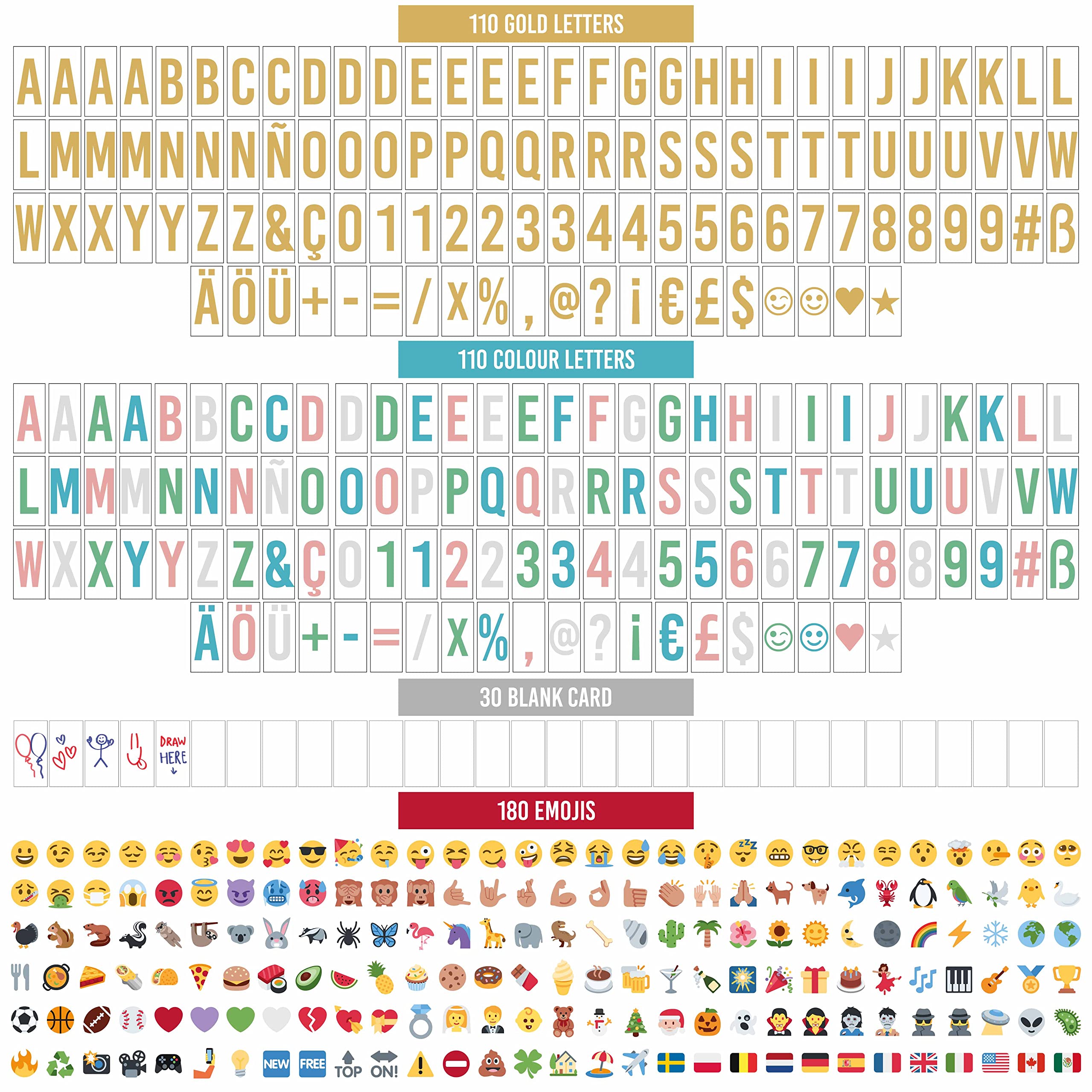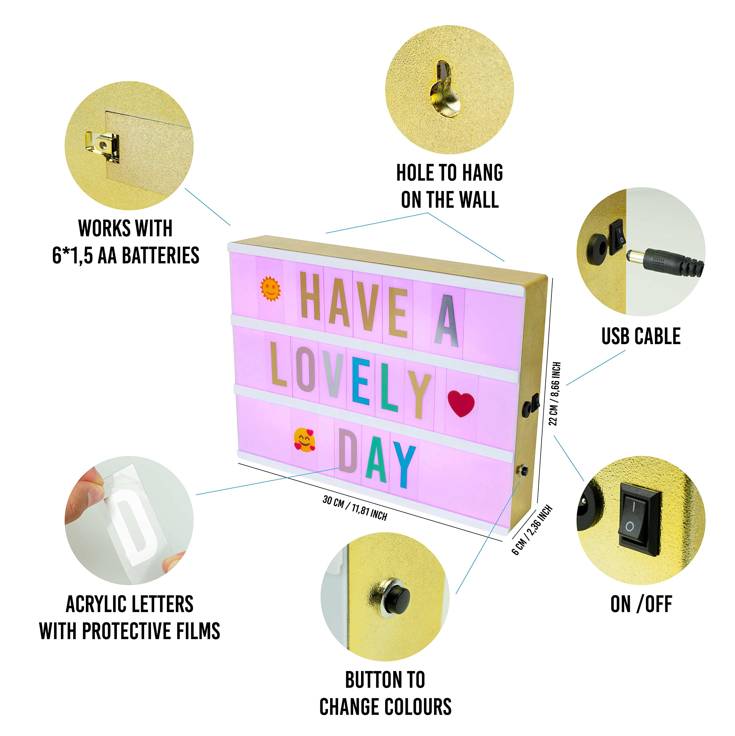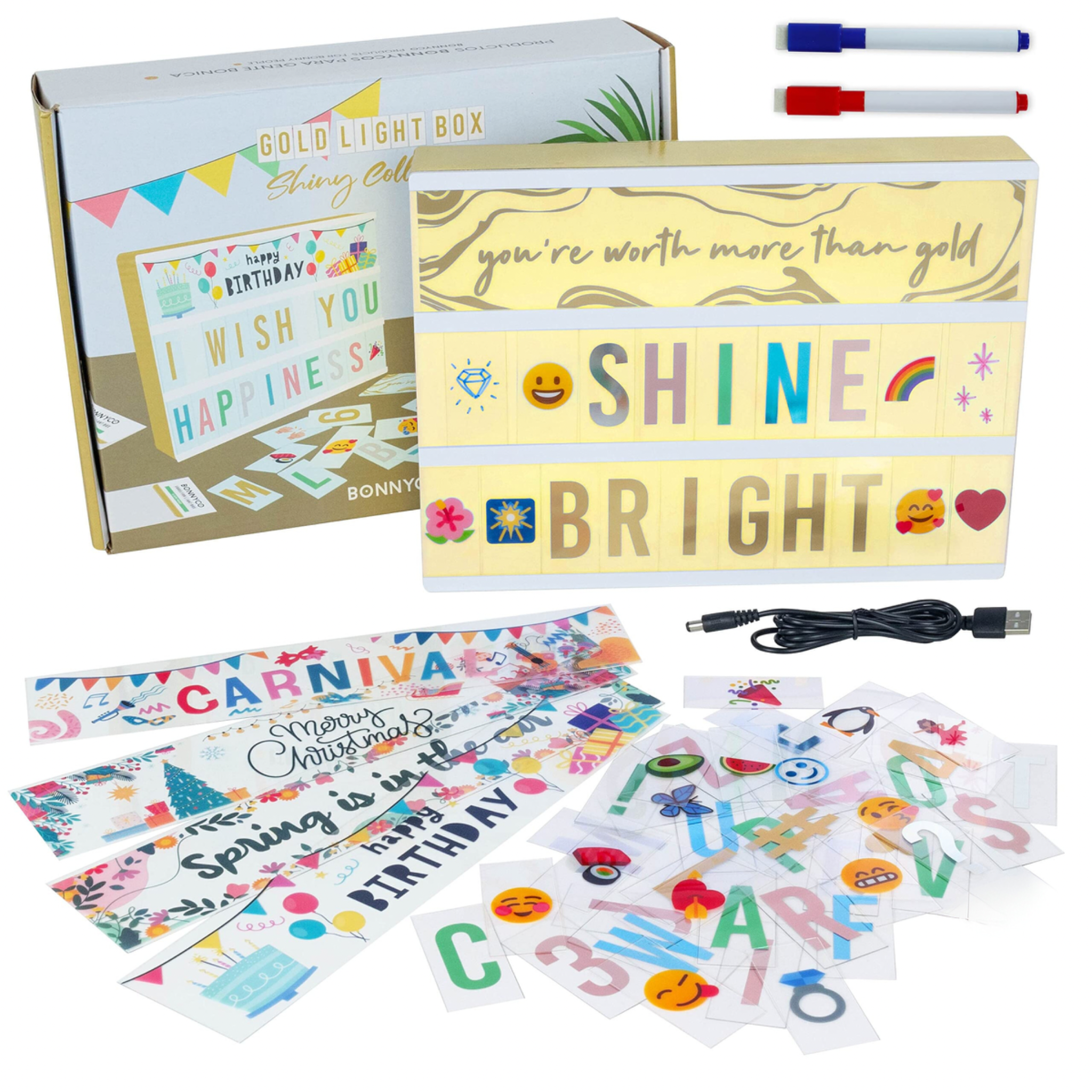Caja de luz de cine A4 dorado brillante 16 colores con 400 letras y emojis