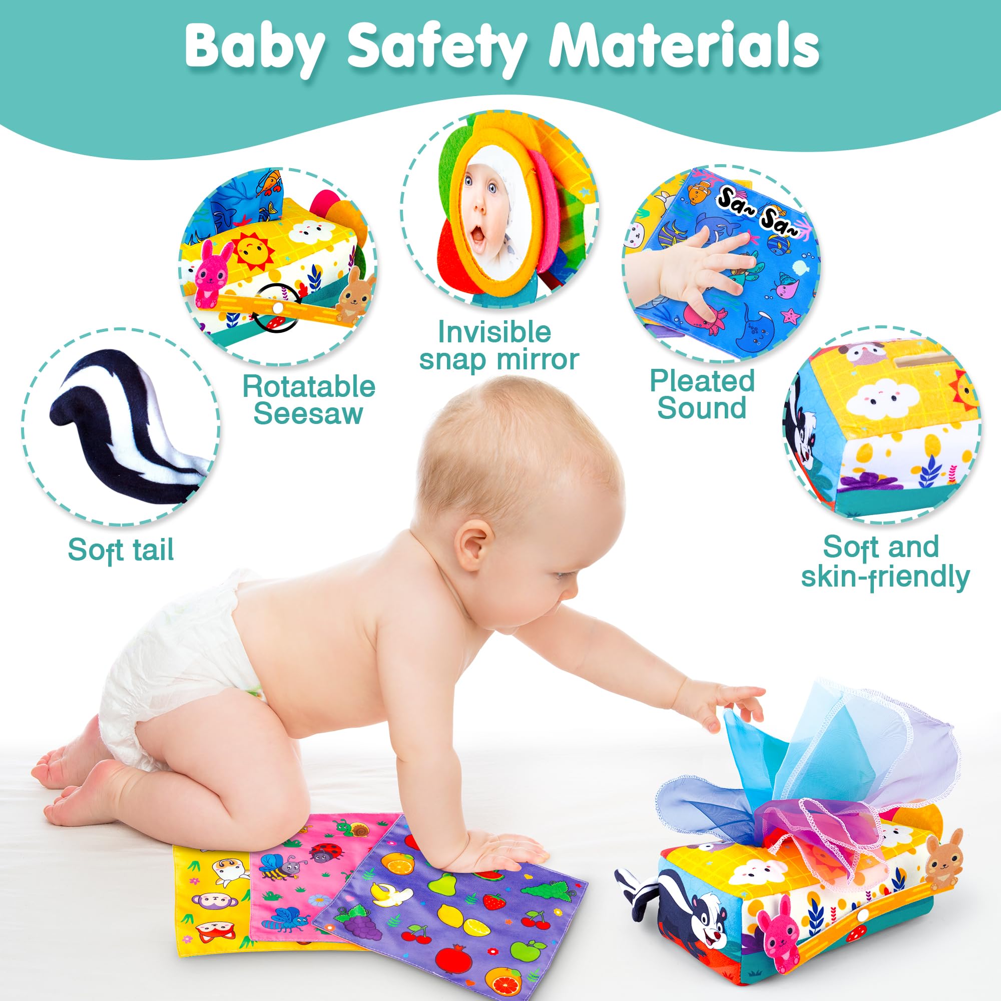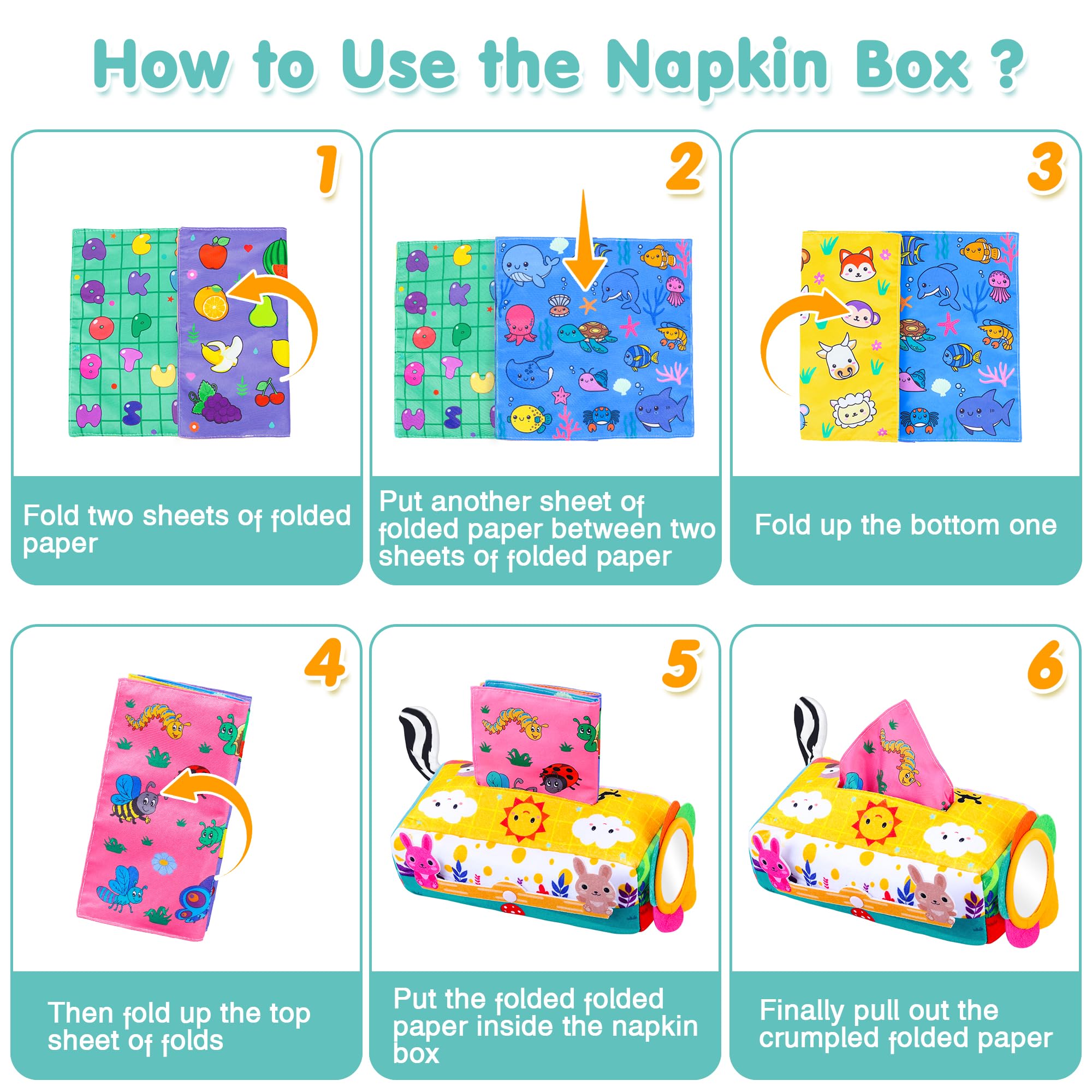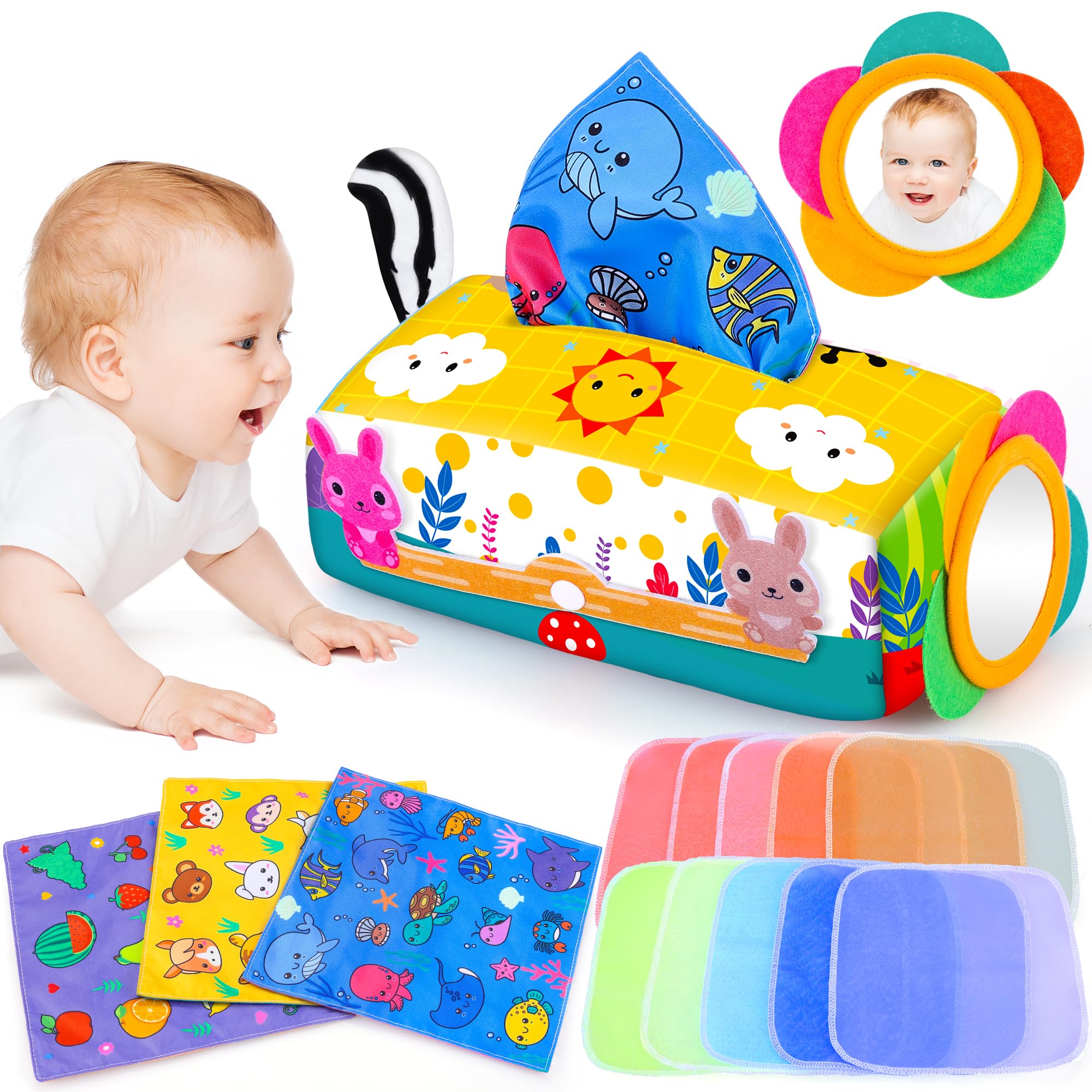 Caja de pañuelos para bebé, juguete para bebés de 6 a 12 meses