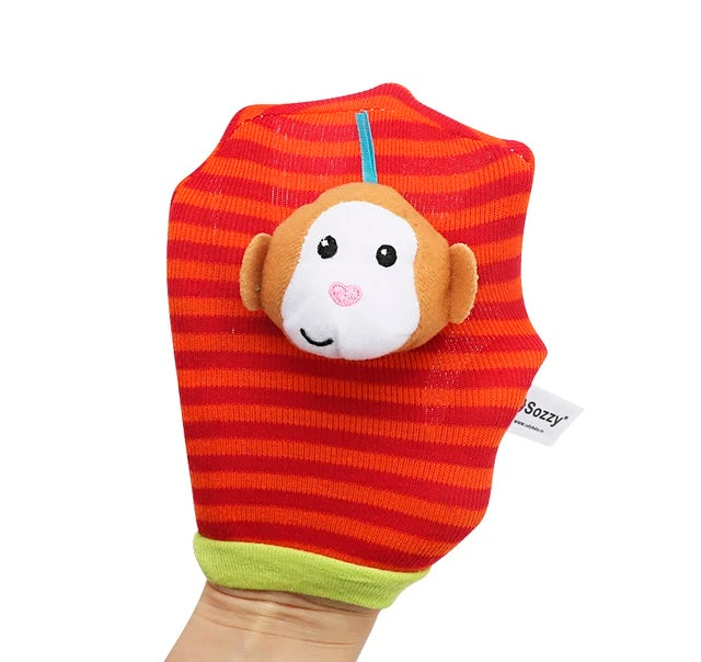 Este divertido sonajero de muñeca y calcetín con animales permiten que tú bebé se entretenga y estimule la coordinación en él.