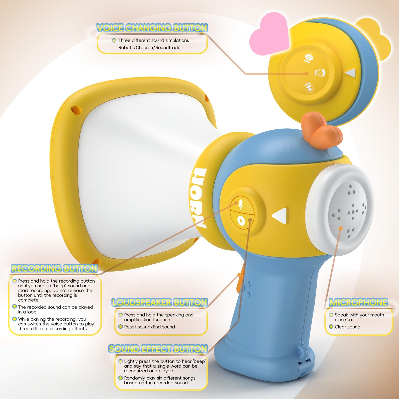 Cambiador de voz para niños, juguete de megáfono con 3 grabadores de efectos de sonido y música