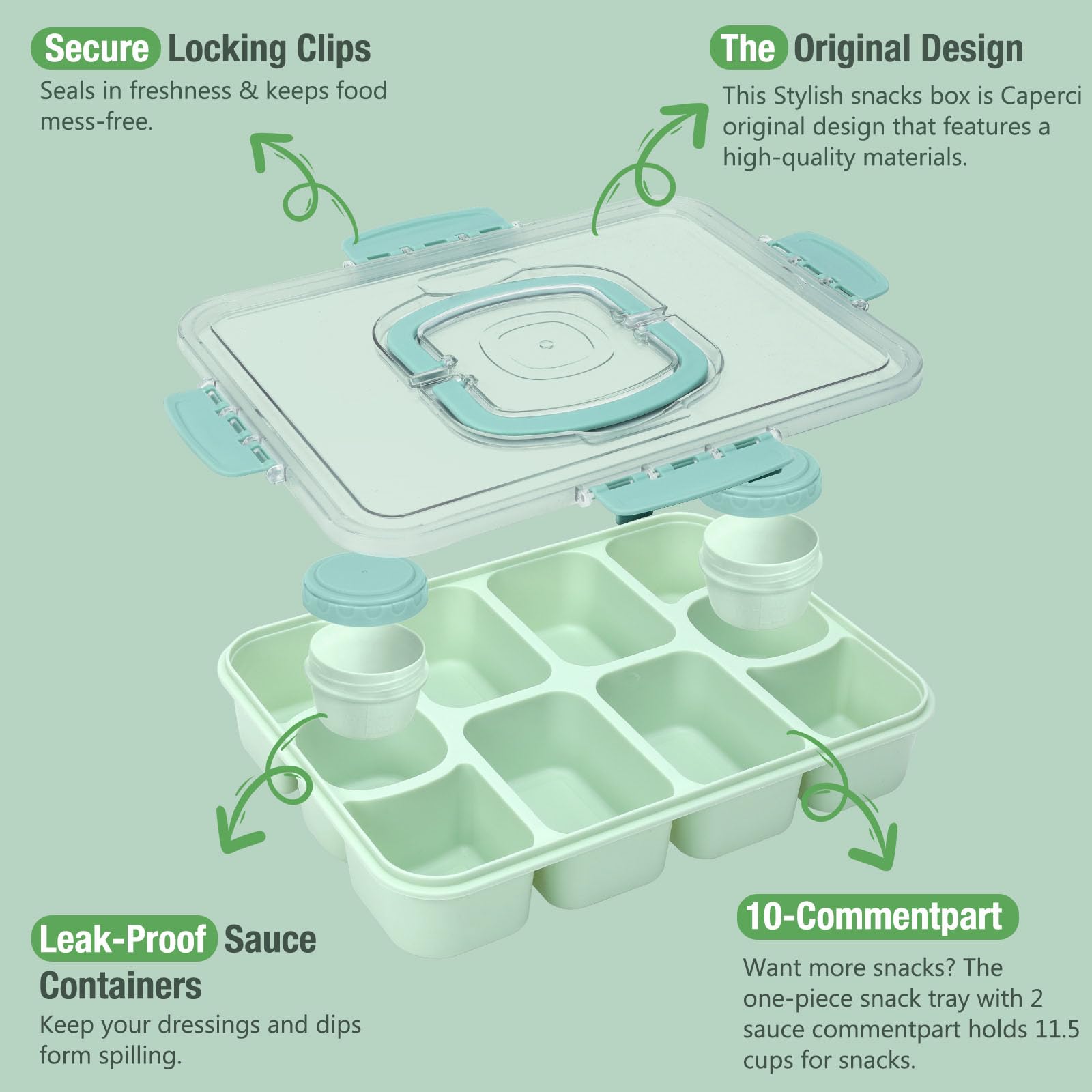 El original y de alta calidad: duradero, construido para durar y te ahorra el gasto de comprar varias veces. La bandeja de aperitivos Caperci pesa 1.7 libras y utiliza polipropileno grueso de grado seguro para alimentos. Además, todo está hecho de materiales sin BPA que son seguros, ecológicos y reutilizables.