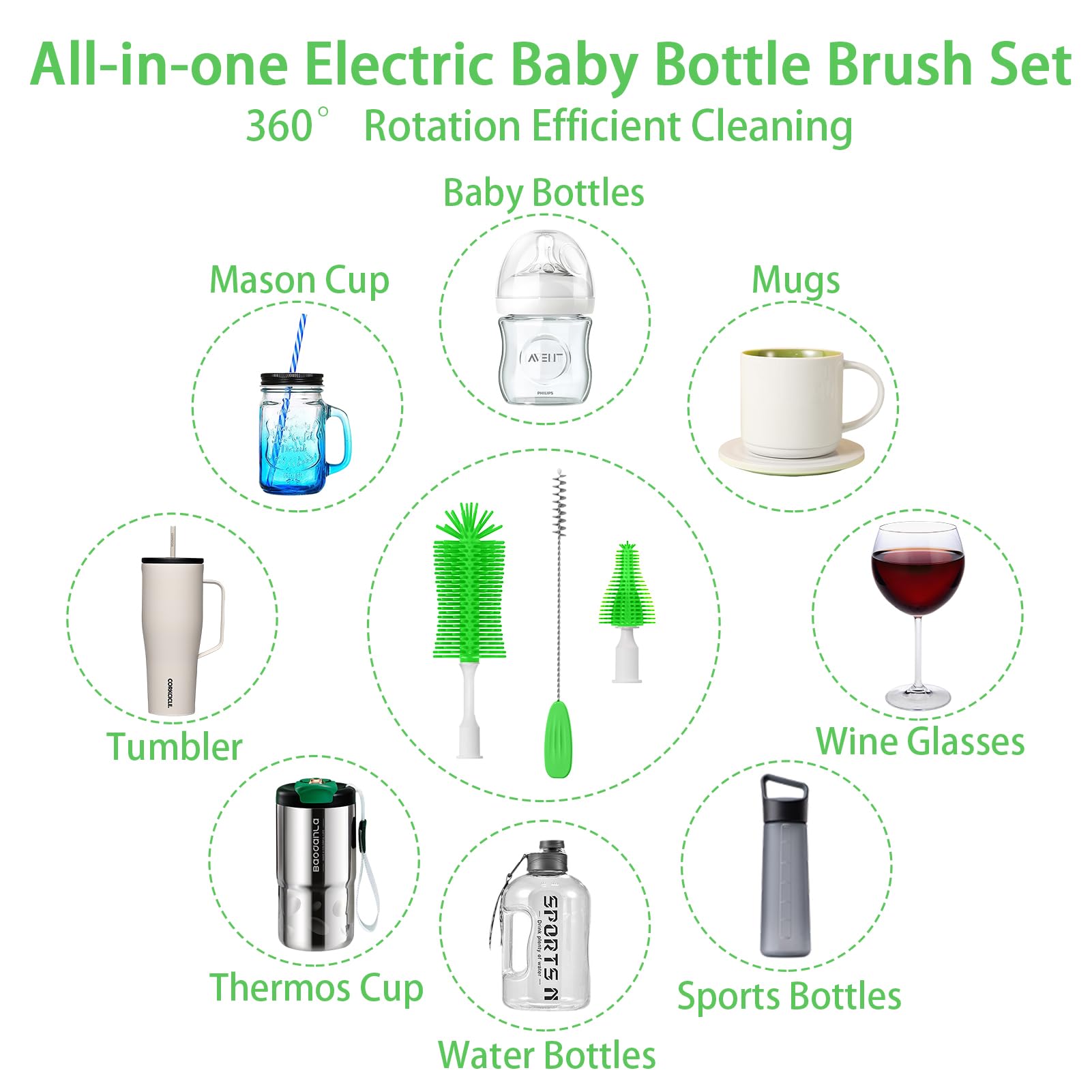 Cepillo eléctrico para biberones, limpiador eléctrico recargable para biberones