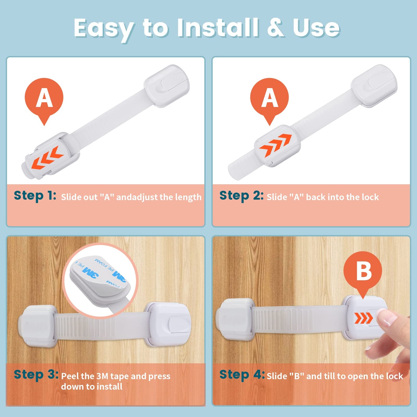 Cerraduras de correa de seguridad para nevera, armarios, cajones, lavavajillas y más