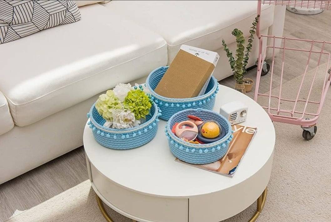 Cesta De Cuerda Azul Juego De 3 Piezas