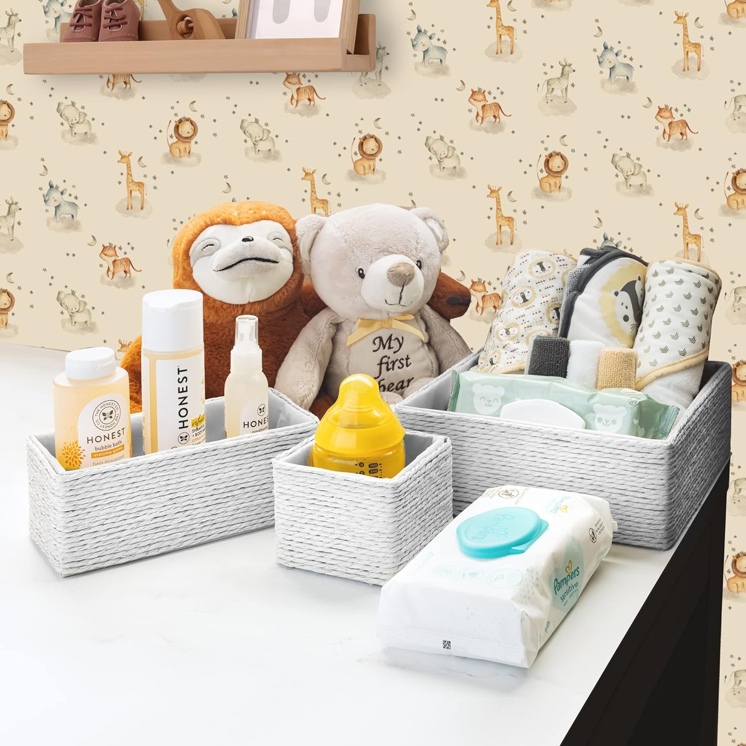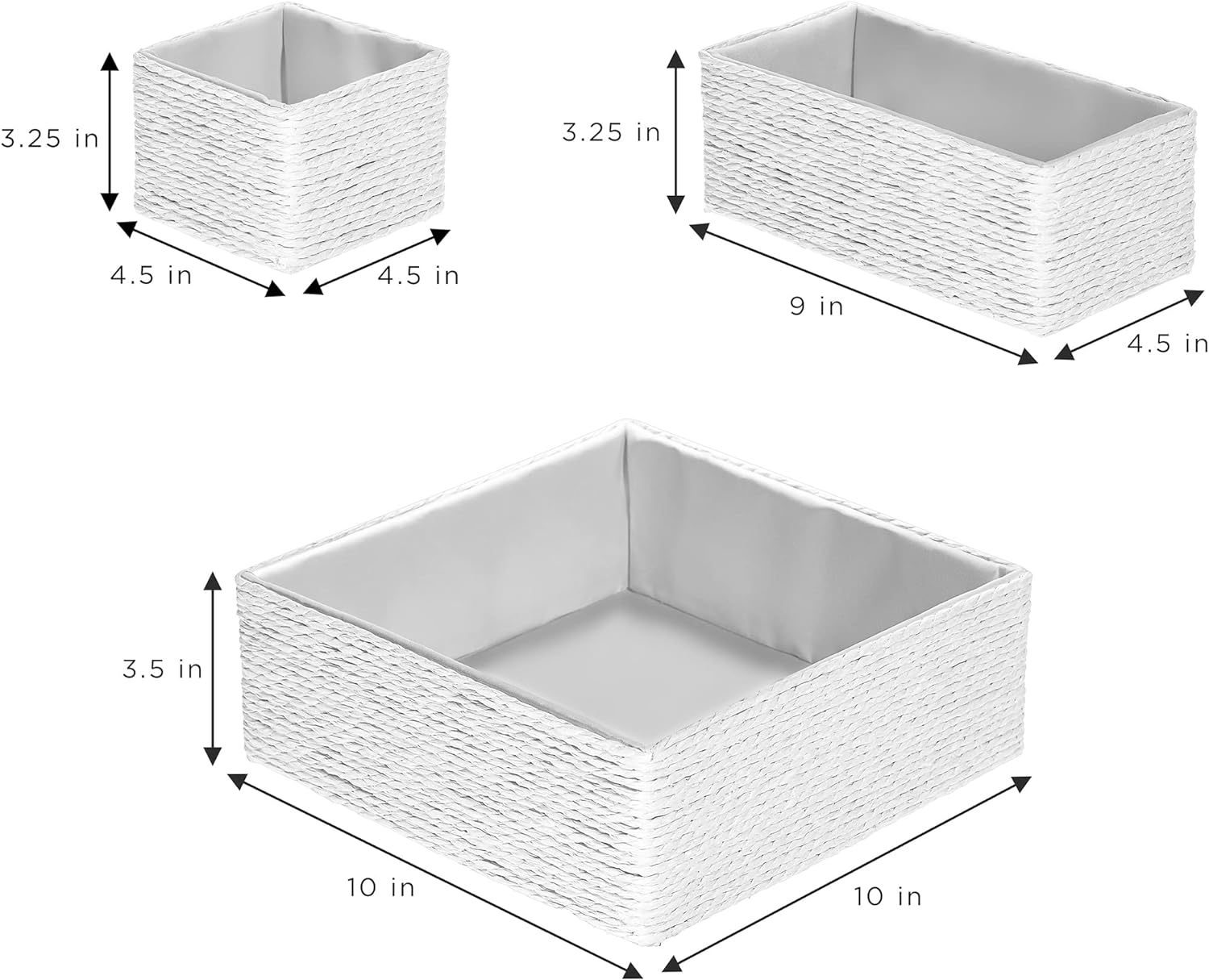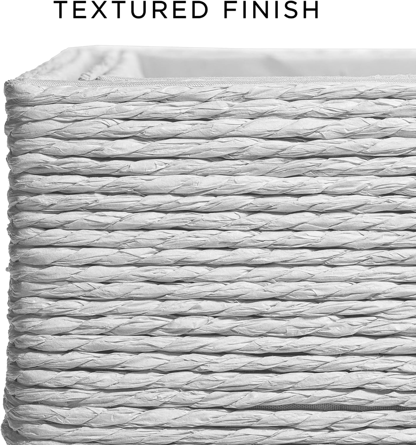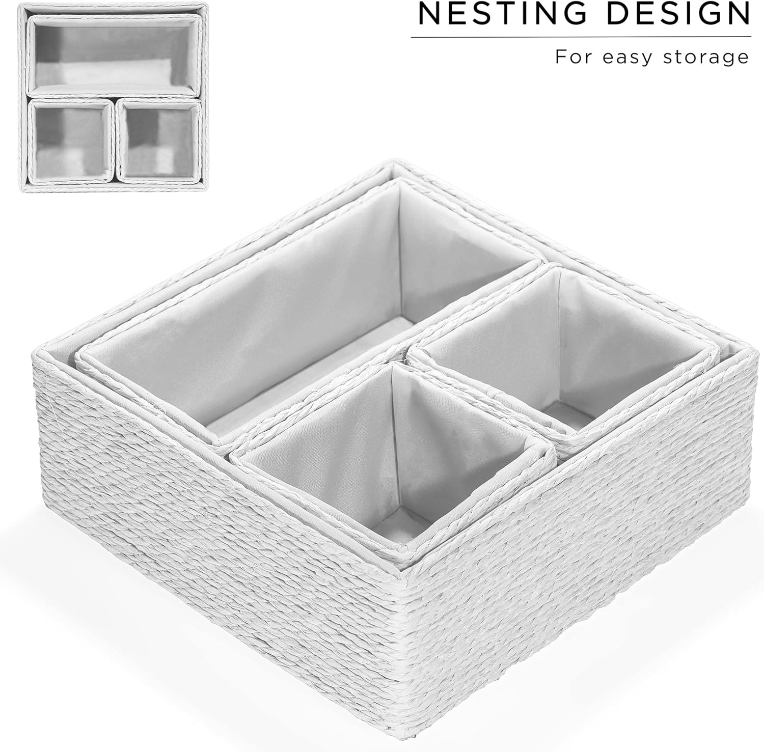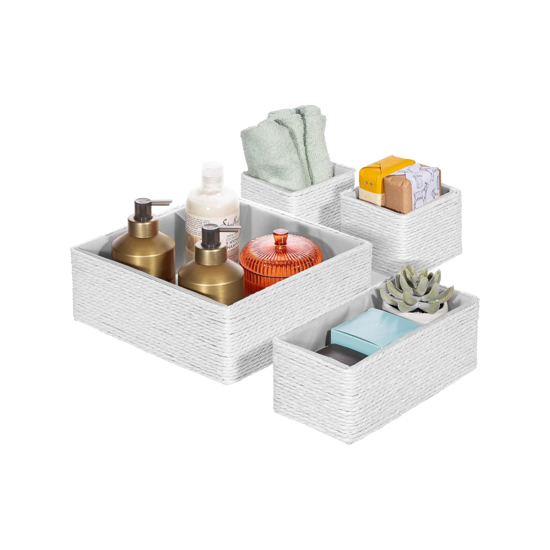 Juego de canastas de 4 piezas: organice los artículos del hogar en este juego de canastas. Cada juego incluye varios tamaños para complementar las estanterías abiertas. Diseño suave torcido/trenzado con material de cuerda de papel.