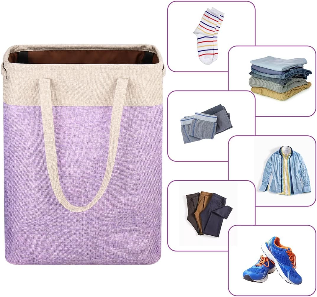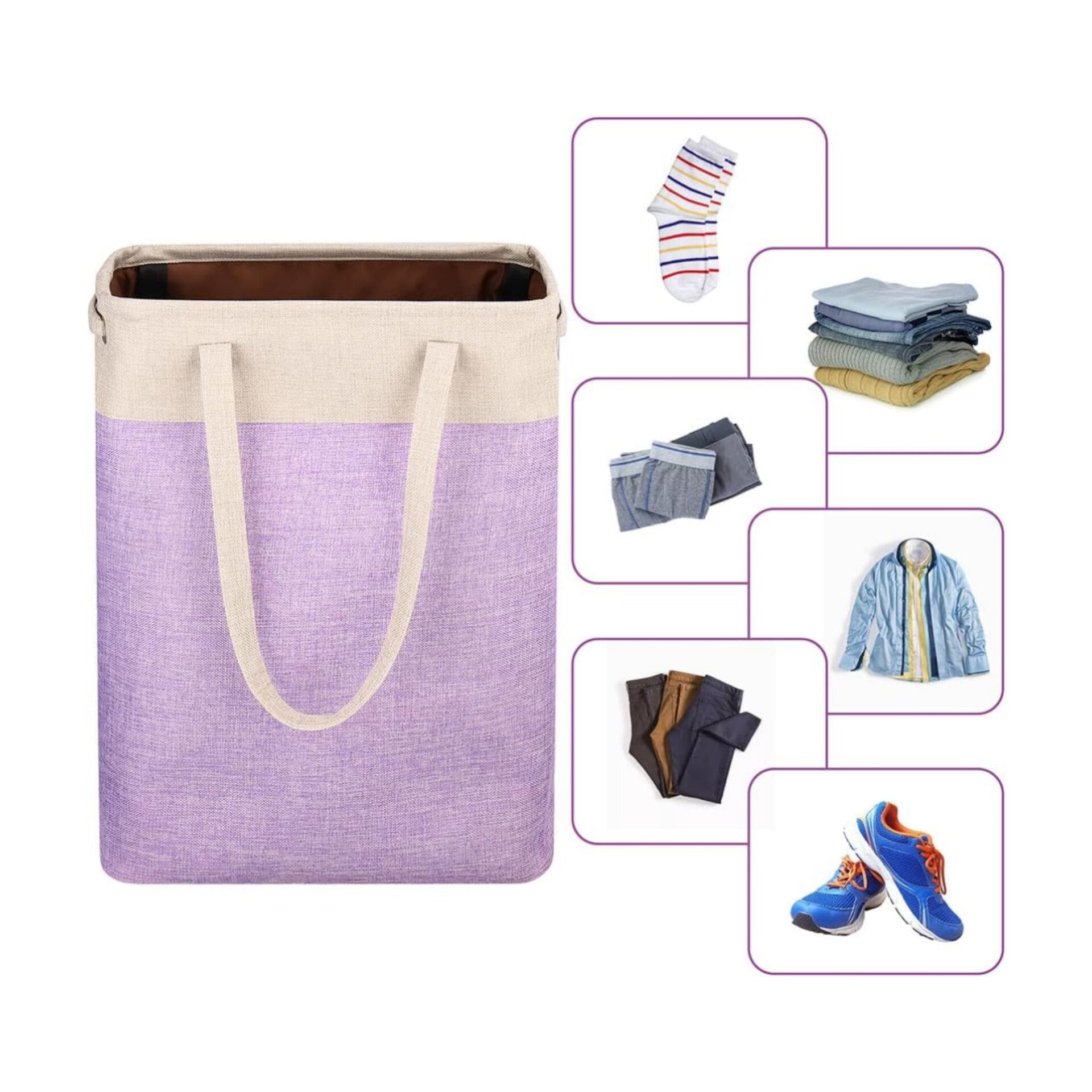 Cesto para la Ropa Sucia con Asas Beige y Morado