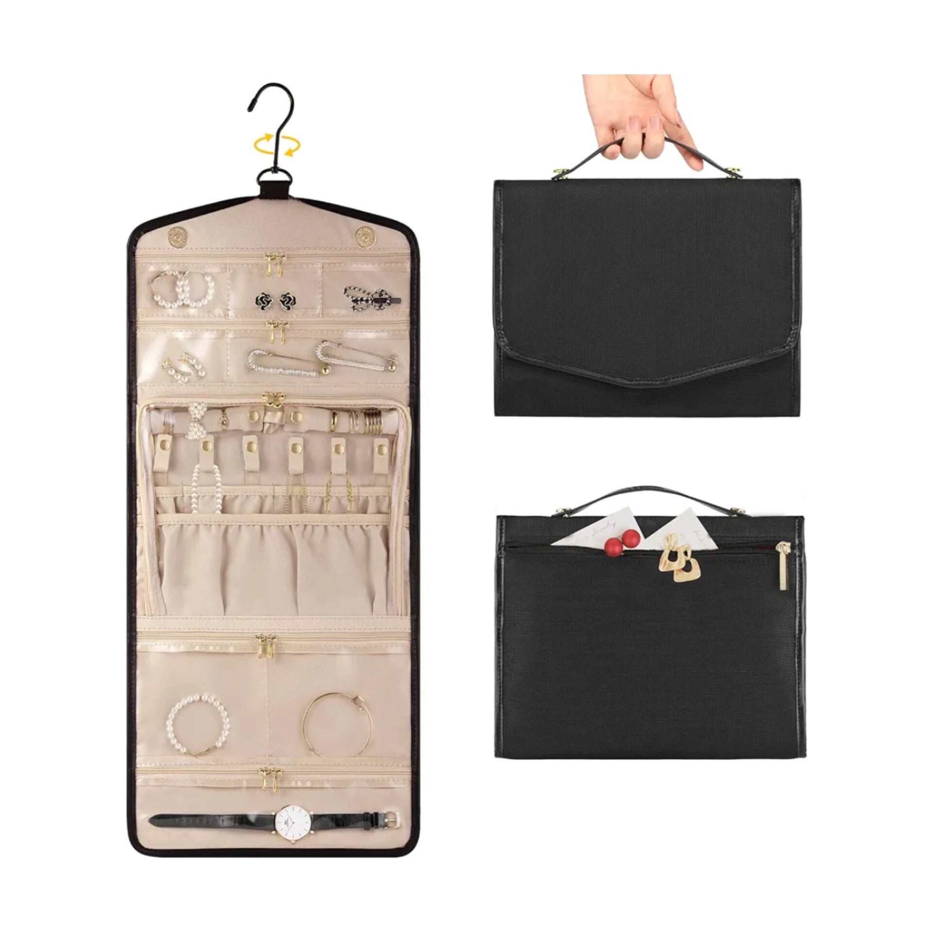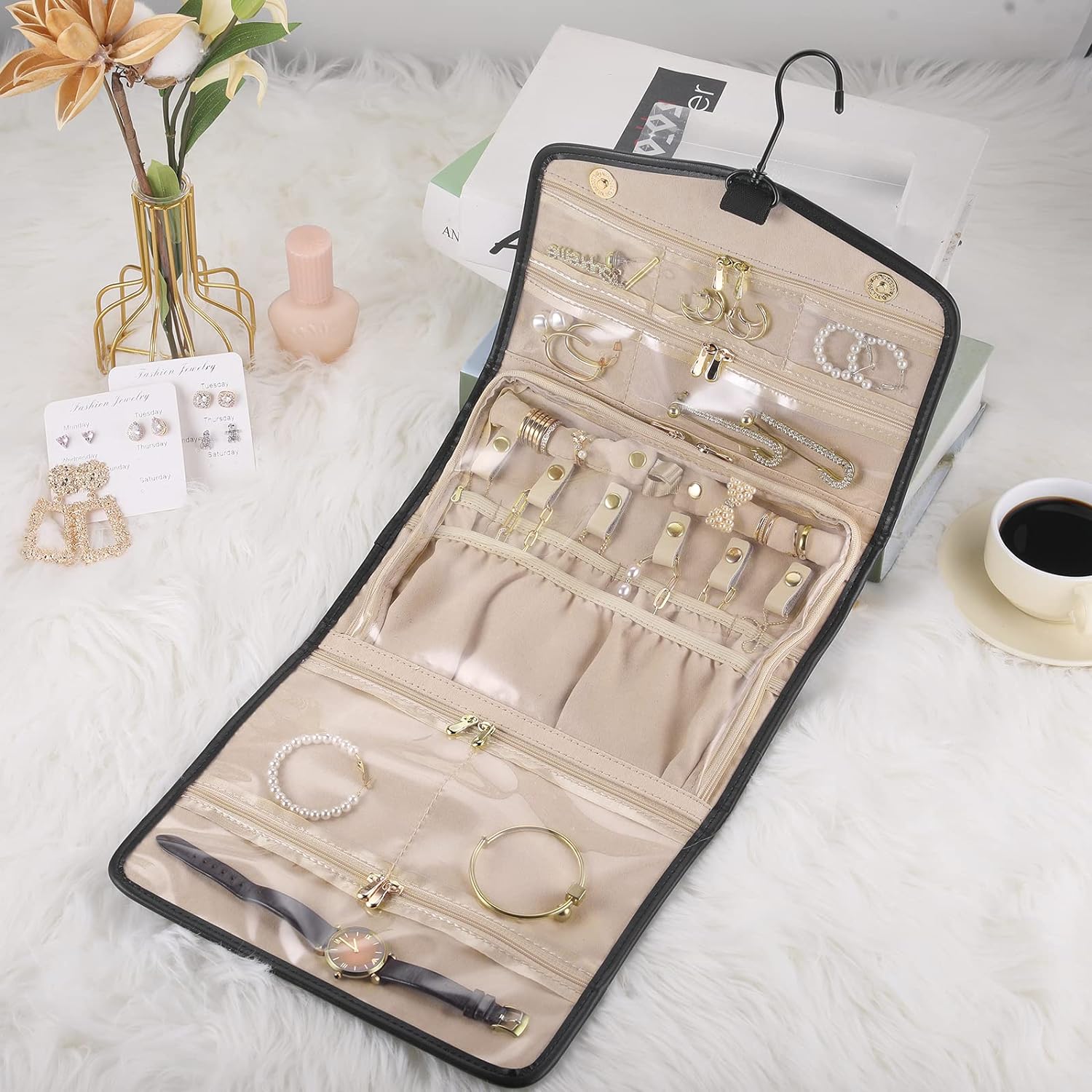CALIDAD PREMIUM: nailon de alta calidad, impermeable, resistente al desgaste; forro de franela suave, puede proteger mejor sus joyas; bolsillo de PVC visible ecológico, a prueba de polvo, fácil de limpiar