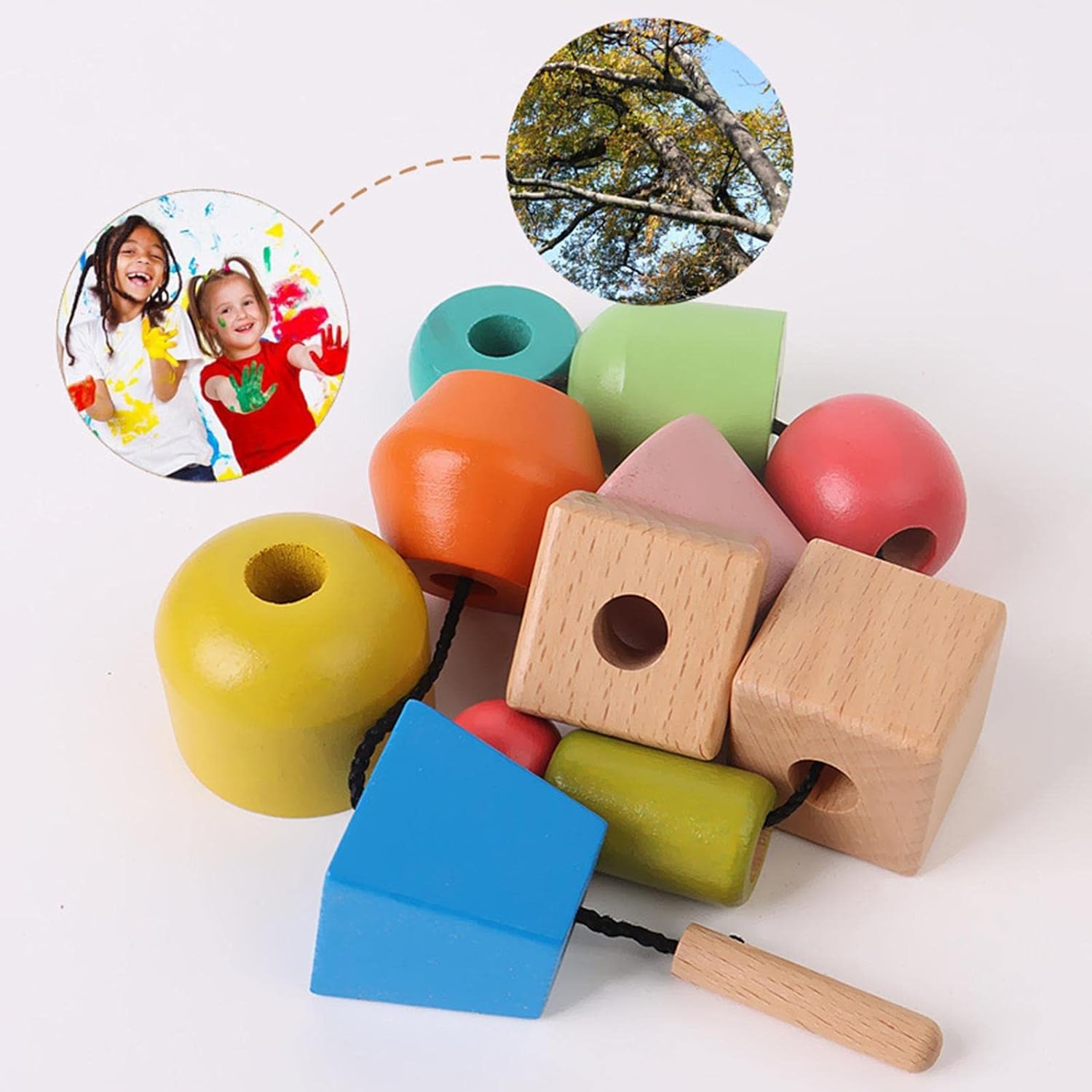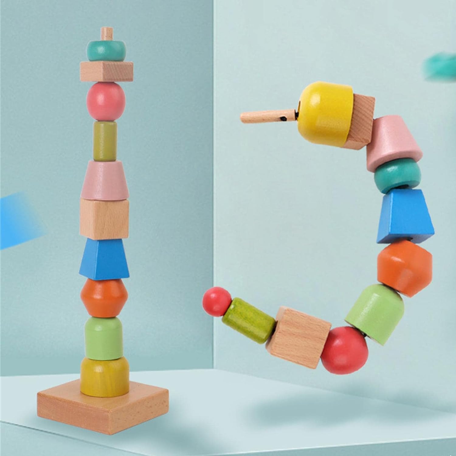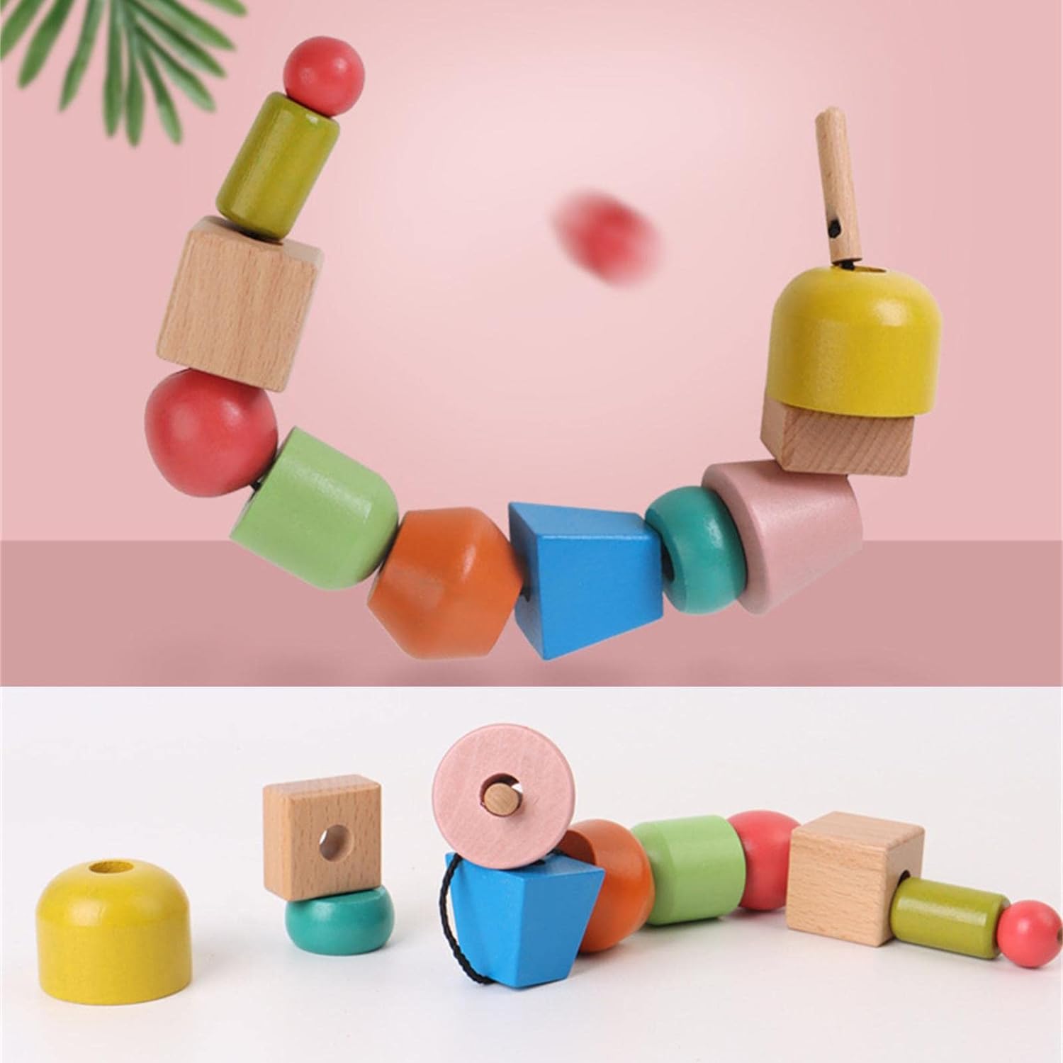 【Funcionamiento】El juego de cuentas de hilo arcoíris mejora la capacidad de manejo de los niños, lo que mejora aún más la coordinación ojo-mano y ayuda al bebé a aprender conocimientos básicos de las formas adecuadas.